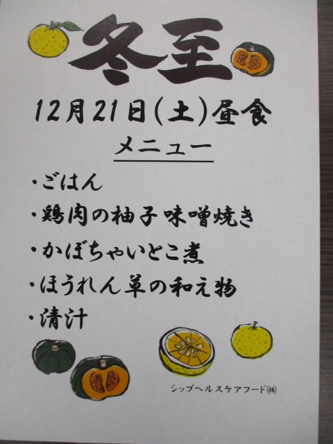 今朝、ケータイを見ると、施設長から「明日、冬至なので柚子買えないかな~」という連絡が・・・(笑)