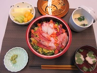 今日は「海鮮ちらし、茶碗蒸し、清汁、フルーツ3種」でした。皆さんきれいに召し上がれていました!(^^)!