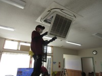 清掃業者さんによる窓ガラスとフィルター清掃が行われました。