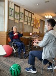 こんにちは、シーハーツ柏です。 毎日実施されている、個別リハビリのご様子です。身体全体を使って、ボールを受け取ります。 ナイスキャッチ!反応がよく、とてもお上手です。「ボールが小さいほうがいいんだな。」と、入所者様。「小さいボールもありますよ。やってみましょう。」と、即座にご要望に対応する担当スタッフ。 小さいボールを受け取るほうが、難易度は上がりますが、手首を柔軟に動かし、掌(手のひら)にボールをおさめていました。 これからも隙間時間に継続お願いします。