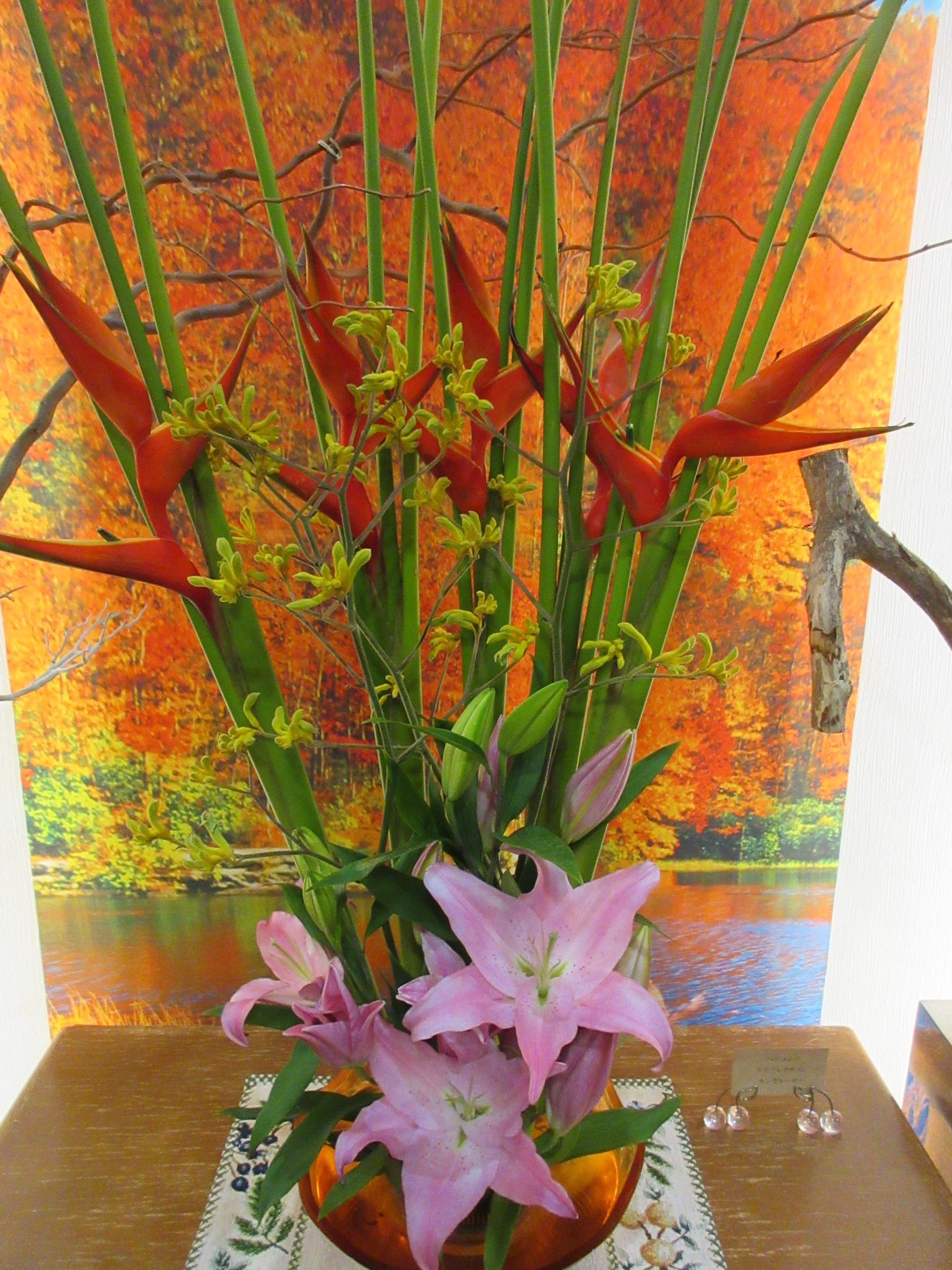 ピンク色のかわいらしいいユリが綺麗に咲いています。