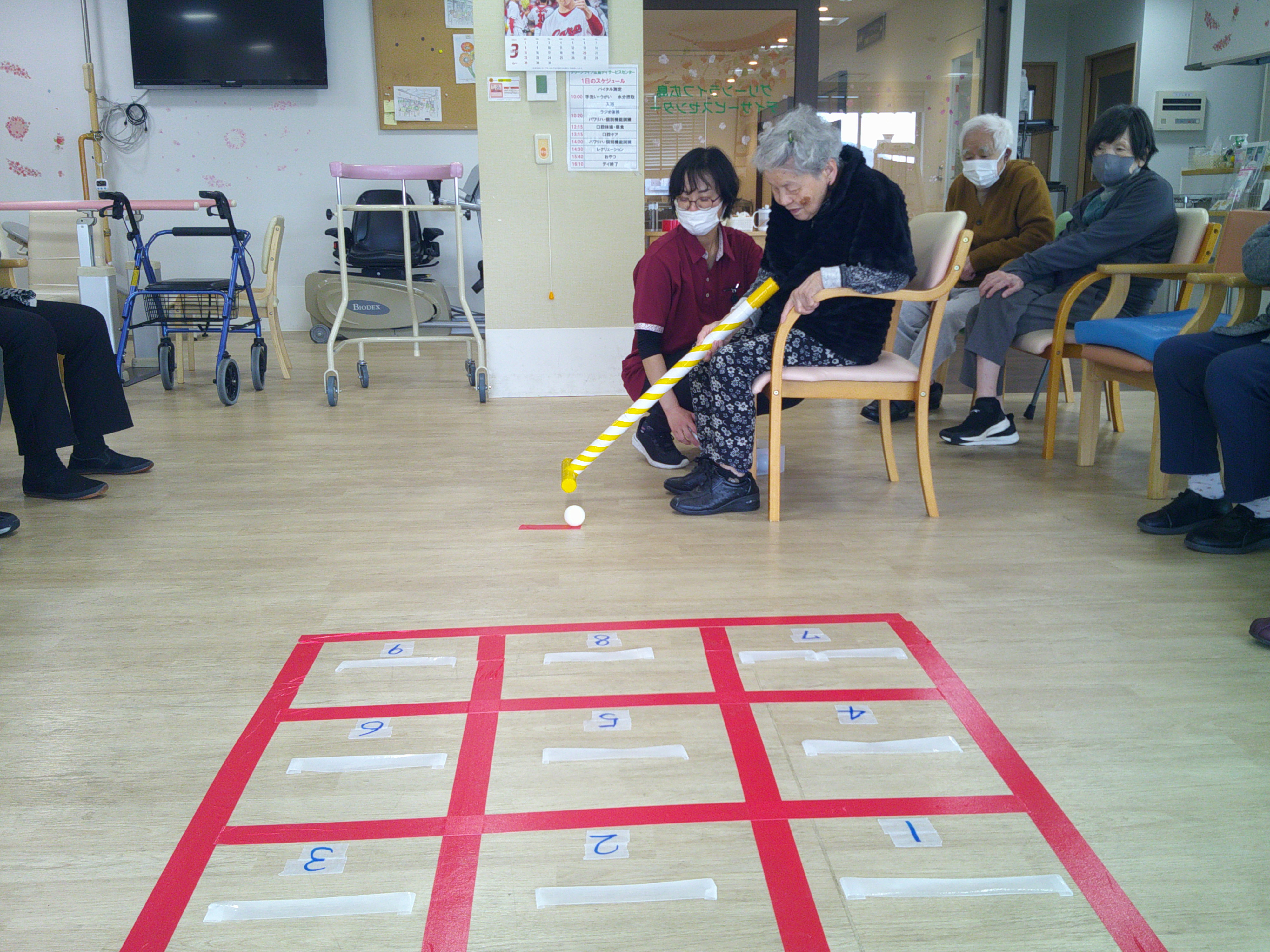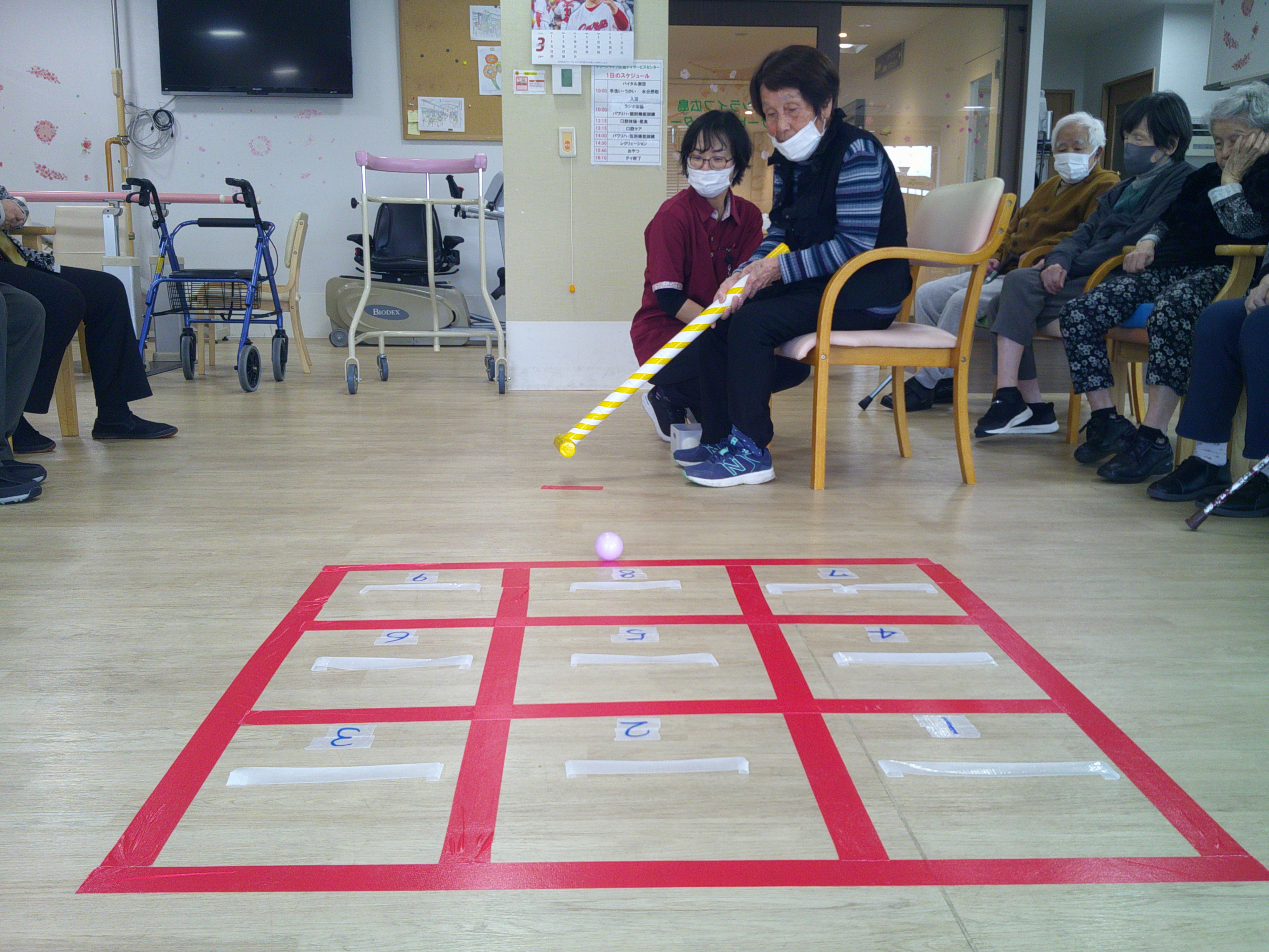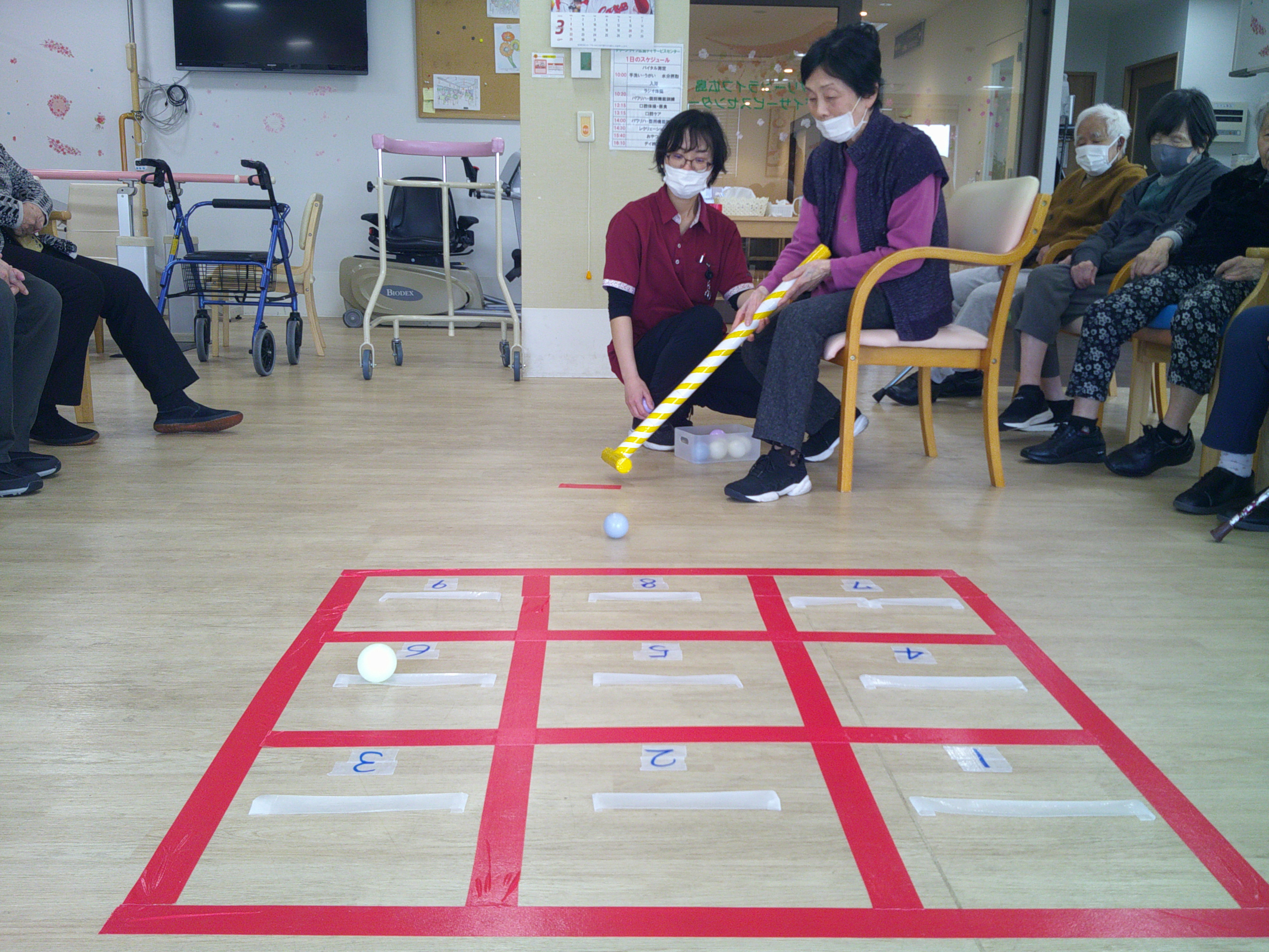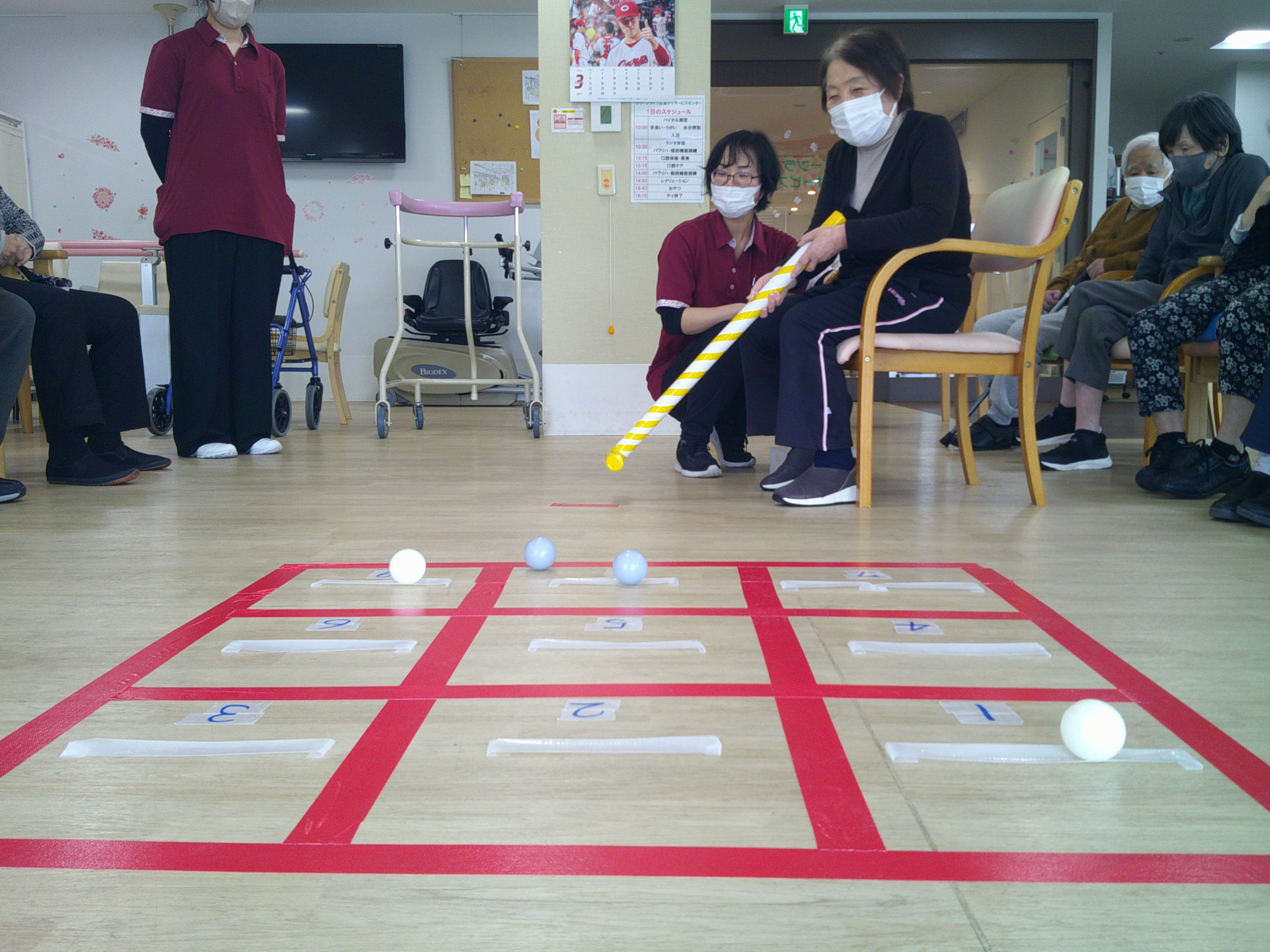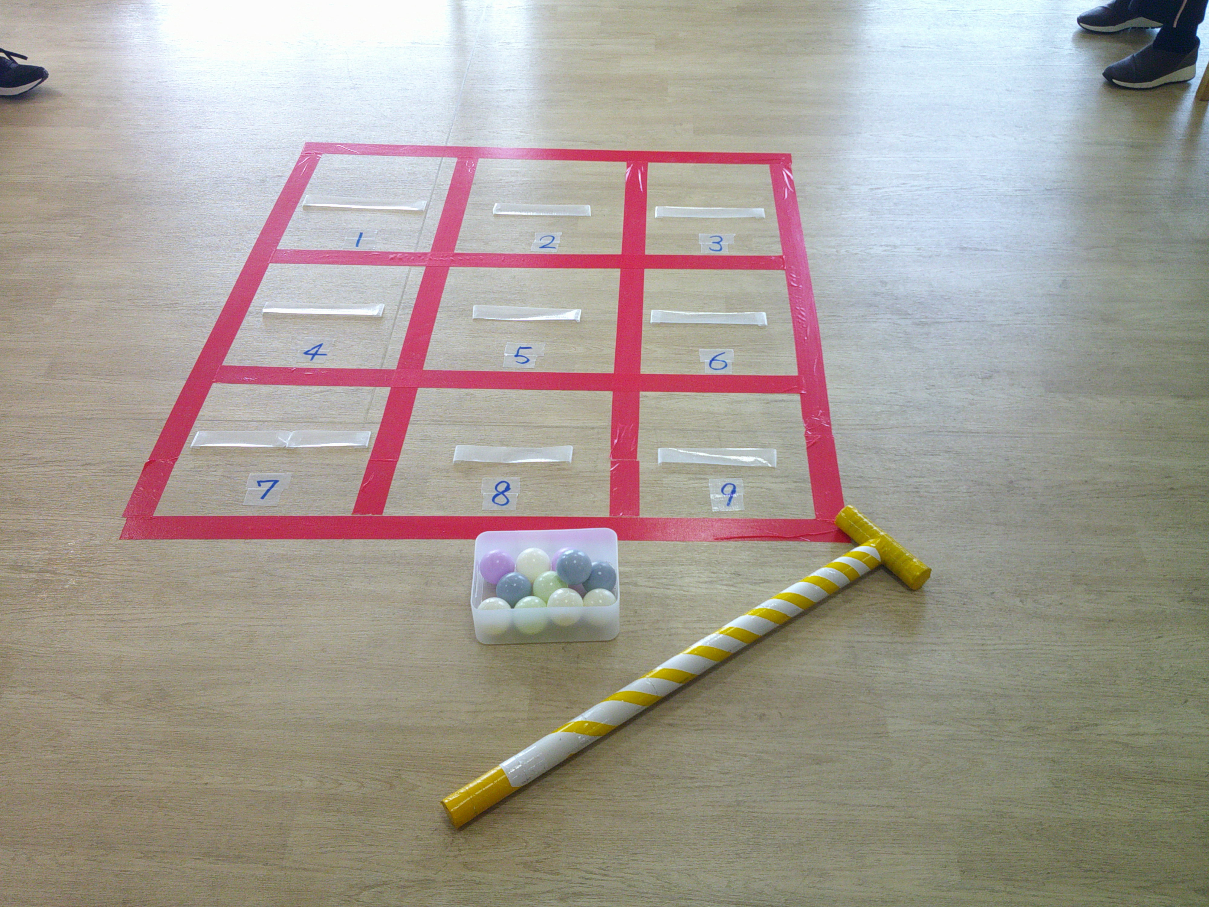本日のレクリエーションは、マスの中にいくつボールを