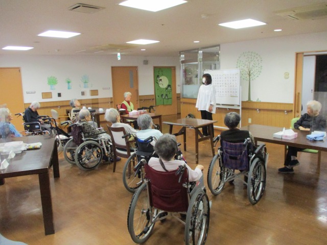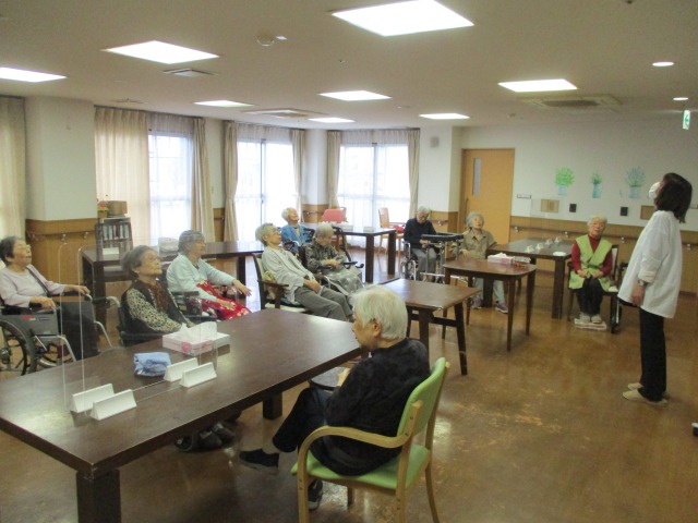 いつものようにストレッチからはじまり、発声練習をしました‼続いて早口言葉、詩の朗読を行いました(*^-^*)今回は新しいご利用者様も参加してくださりフロアには元気な声が響いていました‼
