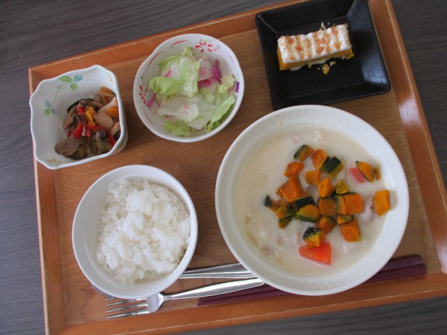 今日はハロウィンです🎃はぴねのお昼ごはんもハロウィンメニューでした(⋈◍>◡<◍)。✧♡いつもとは違った洋食メニューです🌟ほくほくのかぼちゃが入ったシチューは少し肌寒い今日にぴったりでした(*^▽^*)とてもおいしかったです🌟ごちそうさまでした(*^-^*)