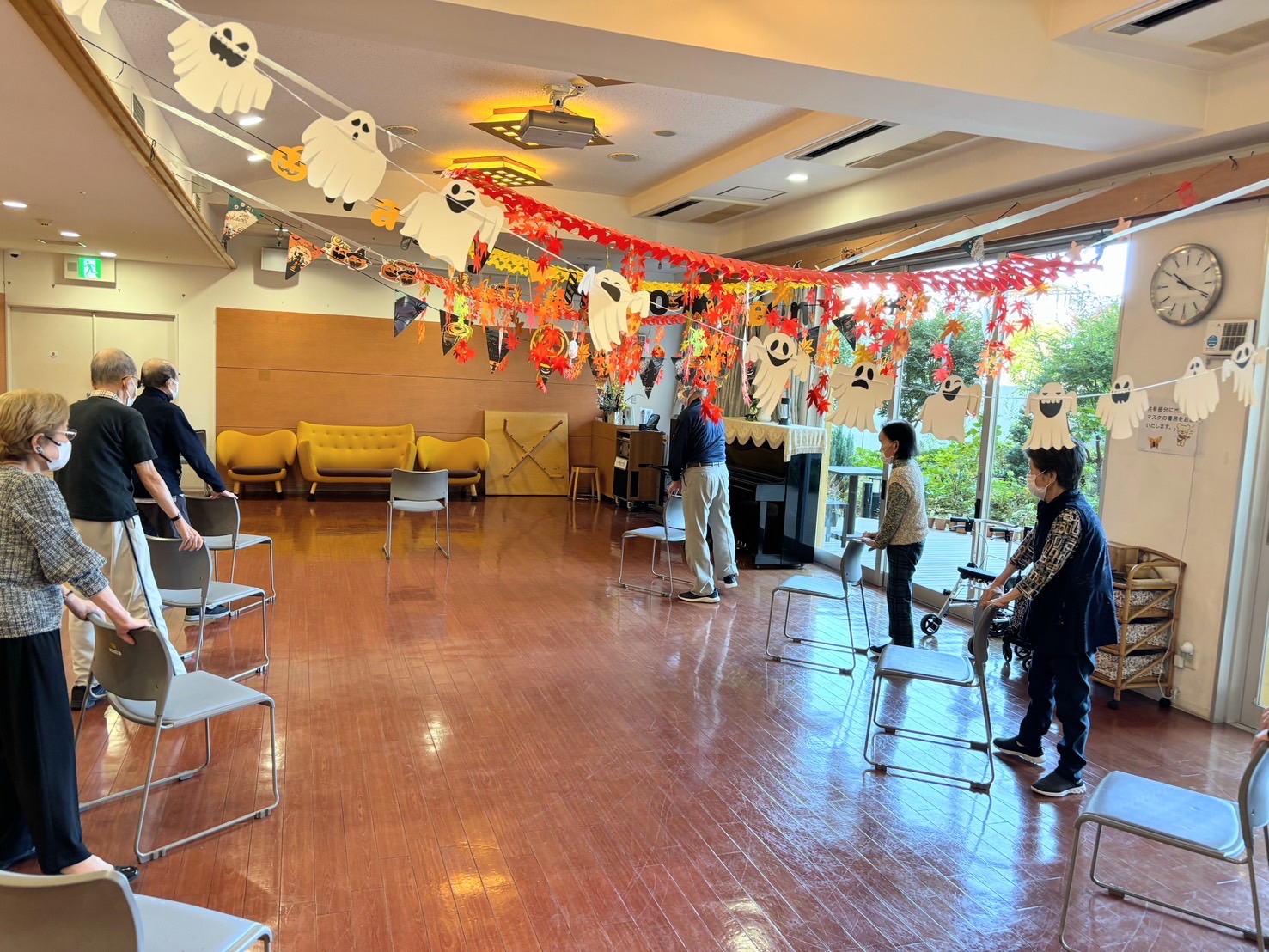 玄関にもハロウィンのおばけの飾りつけ🎃