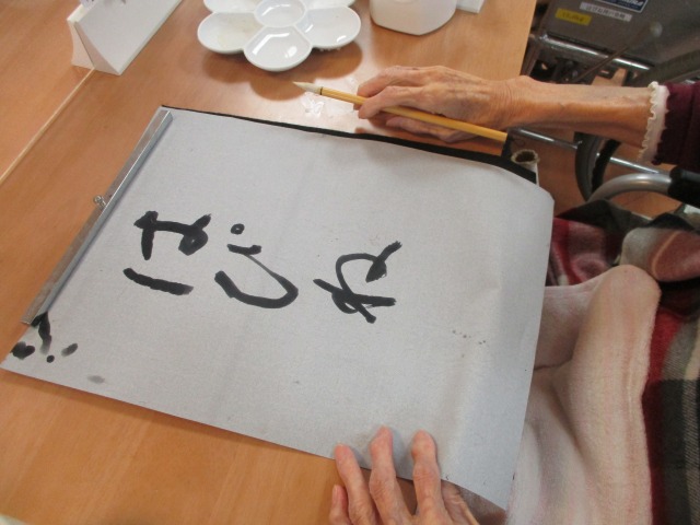 ご利用者様が大好きなお習字をされていました(^^♪ご自分のお名前や、スタッフの名前、施設の名前などいろいろな言葉を書かれていました🌟ご家族様のお話では小さい時からお習字をされていたとの事✨✨✨それも納得‼本当に形が整っていて美しい字ですね(*^-^*)これからもたくさん思う存分、書いていただきたいです♡