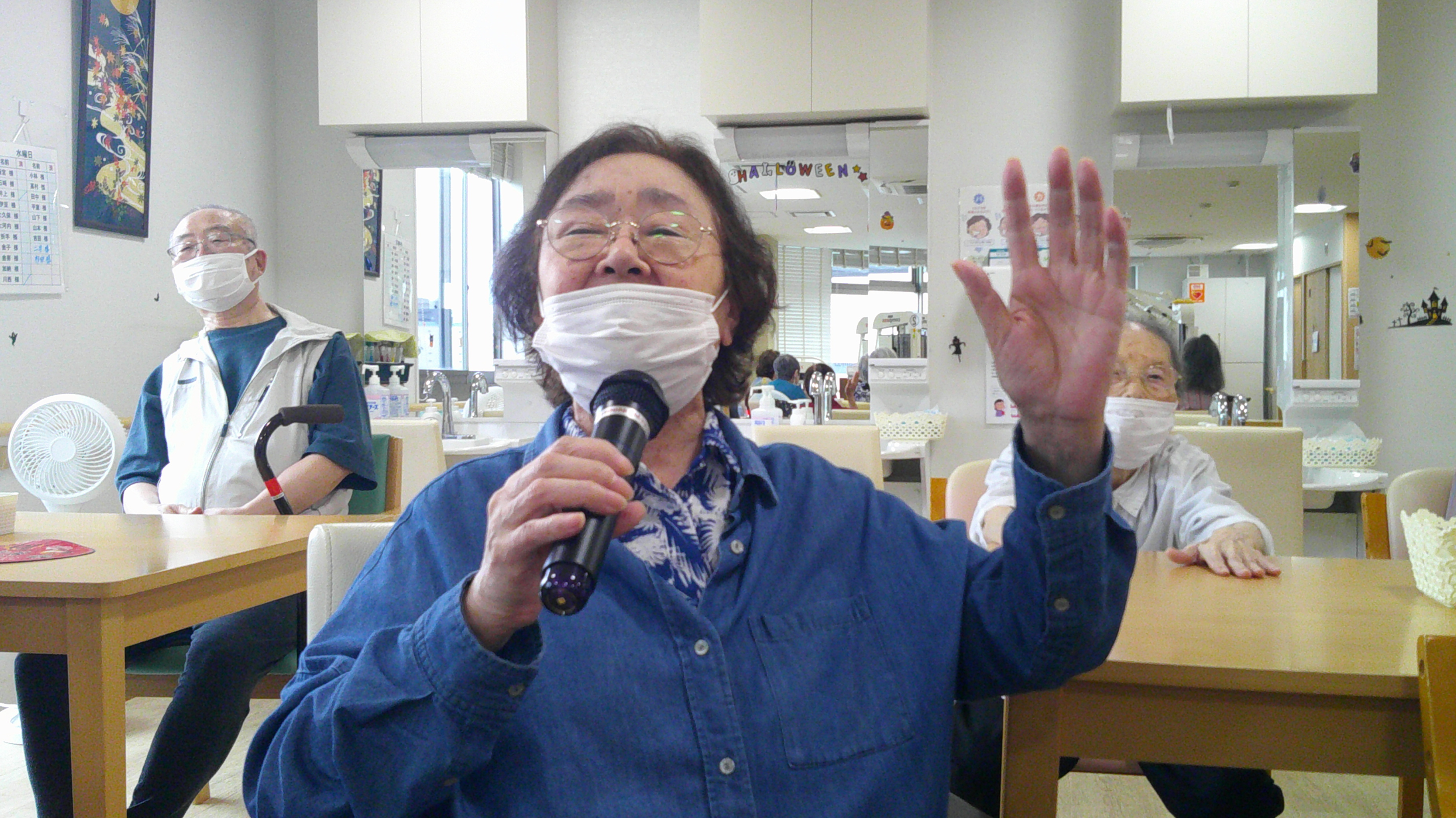 歌を歌うだけではなく、音楽に合わせ身体も動かしながら楽しんでおられました。