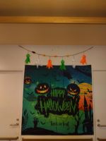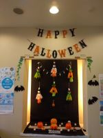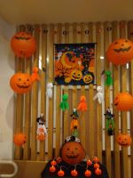 オレンジが目立って華やかな雰囲気となりました。飾りつけは毎年同じなのですが一年経つと忘れていて、これどこだっけ?という感じです。ご家族様も早速、お母様と一緒に写真を撮っていました。ライトのつくかぼちゃはご入居者様が夜スイッチを切って朝またスイッチを入れてくれています。皆で共通して楽しめるのは嬉しい事です((´∀`*))