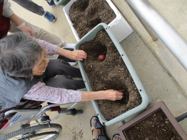 さて先日、はぴね屋上菜園にて皆様にじゃがいもの植え付けをしていただきました(*^-^*)去年採れたじゃがいもを保管して干して種芋に‼きちんと種類ごとにプランターに植えていただきました(*^▽^*)これでまたホクホクのじゃが芋がたくさん出来るぞ~‼早く食べたいな( ;∀;)