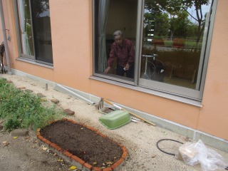 利用者様から頂いたチューリップの球根を植えるための花壇を作りました。