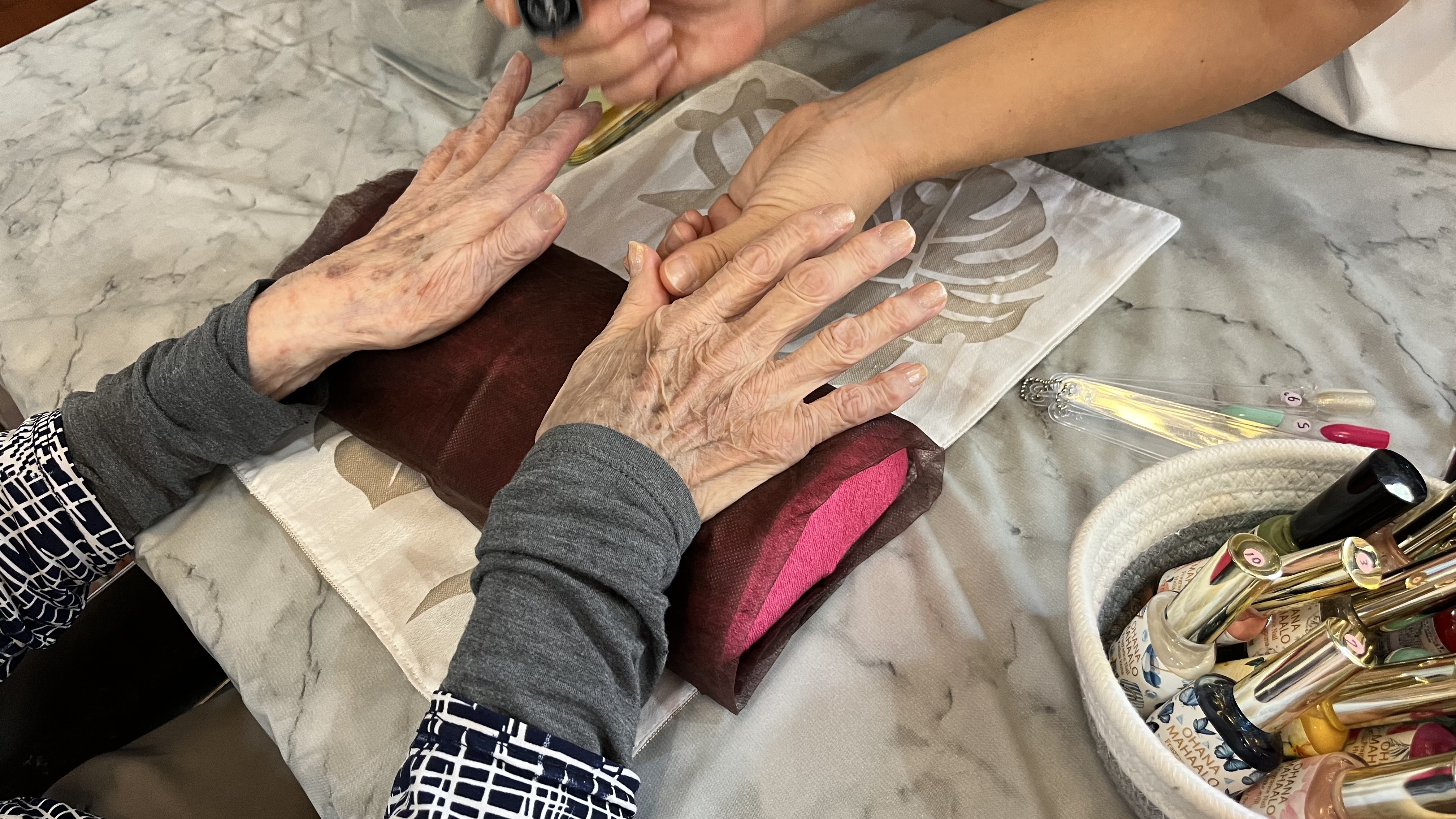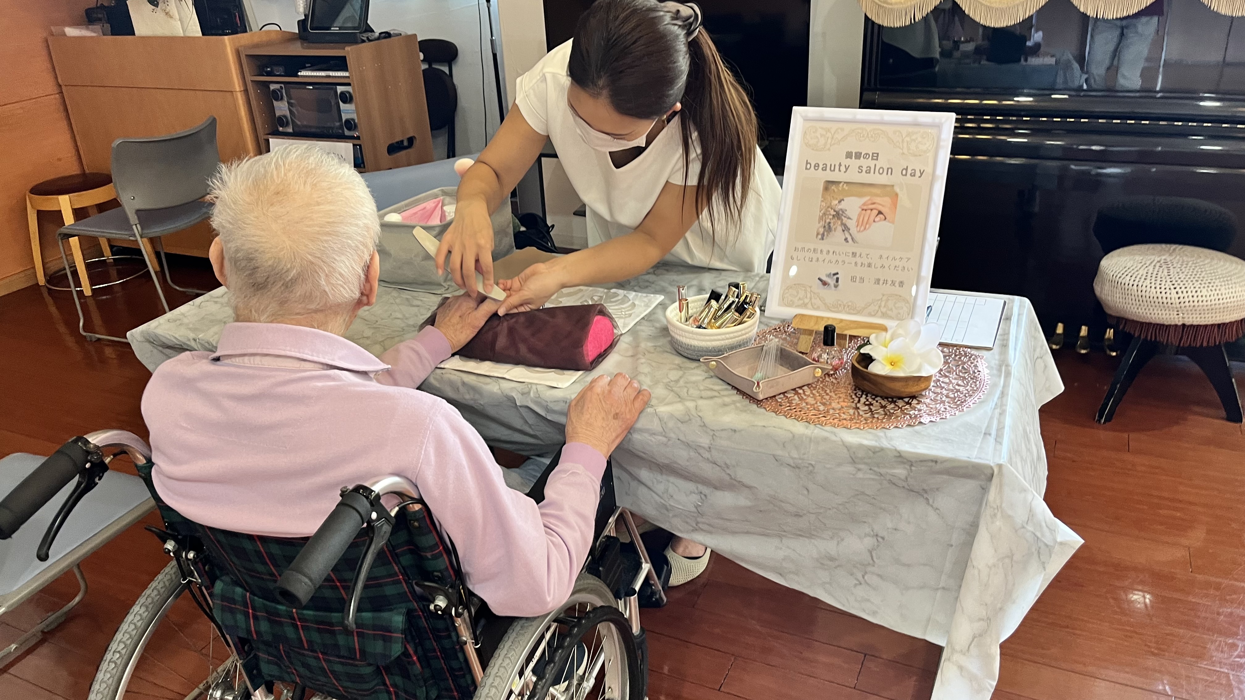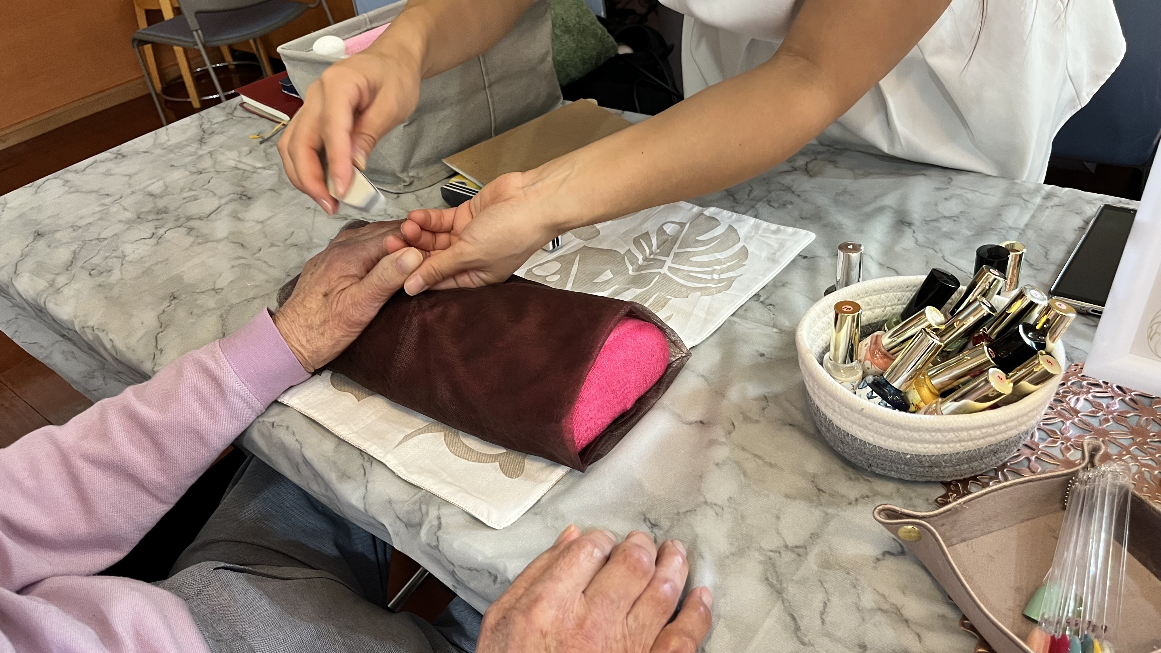 お話をしながらマッサージや爪のお手入れ、