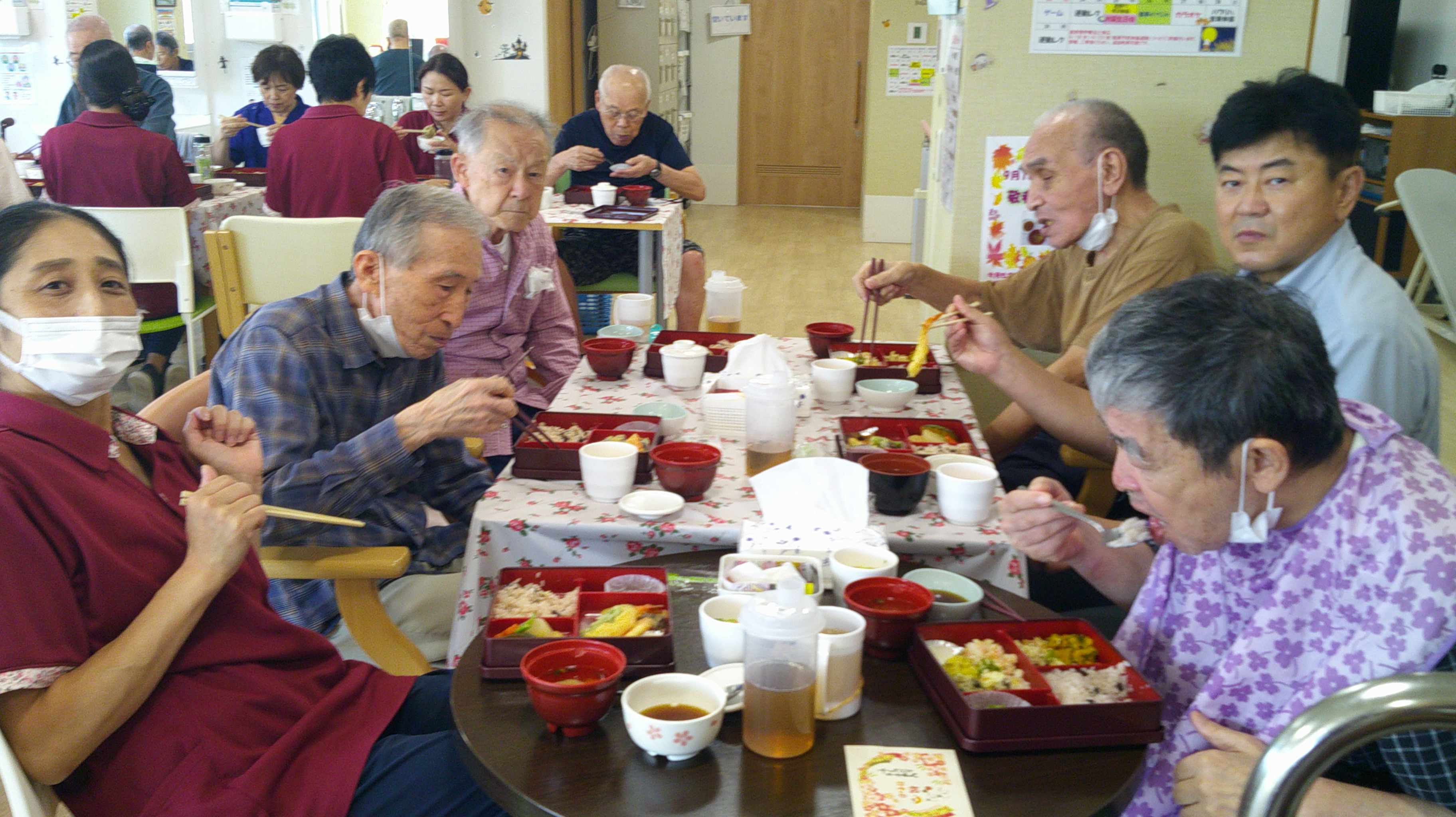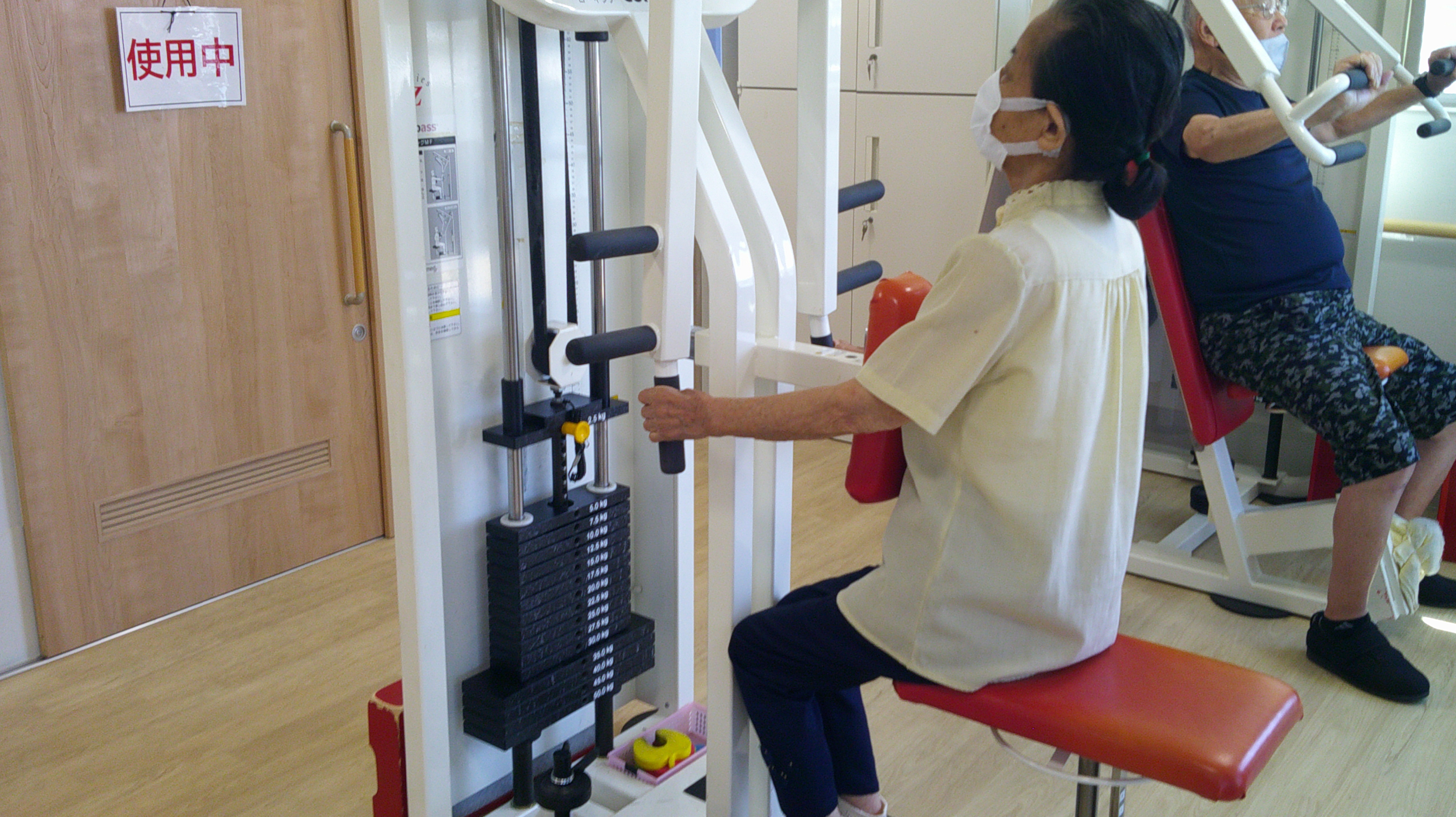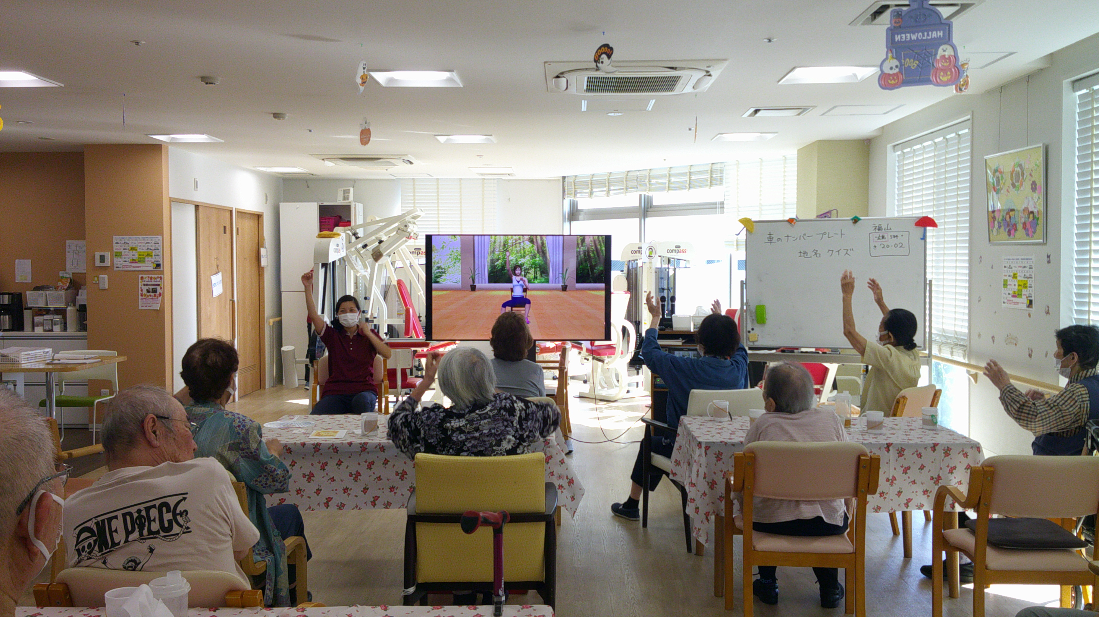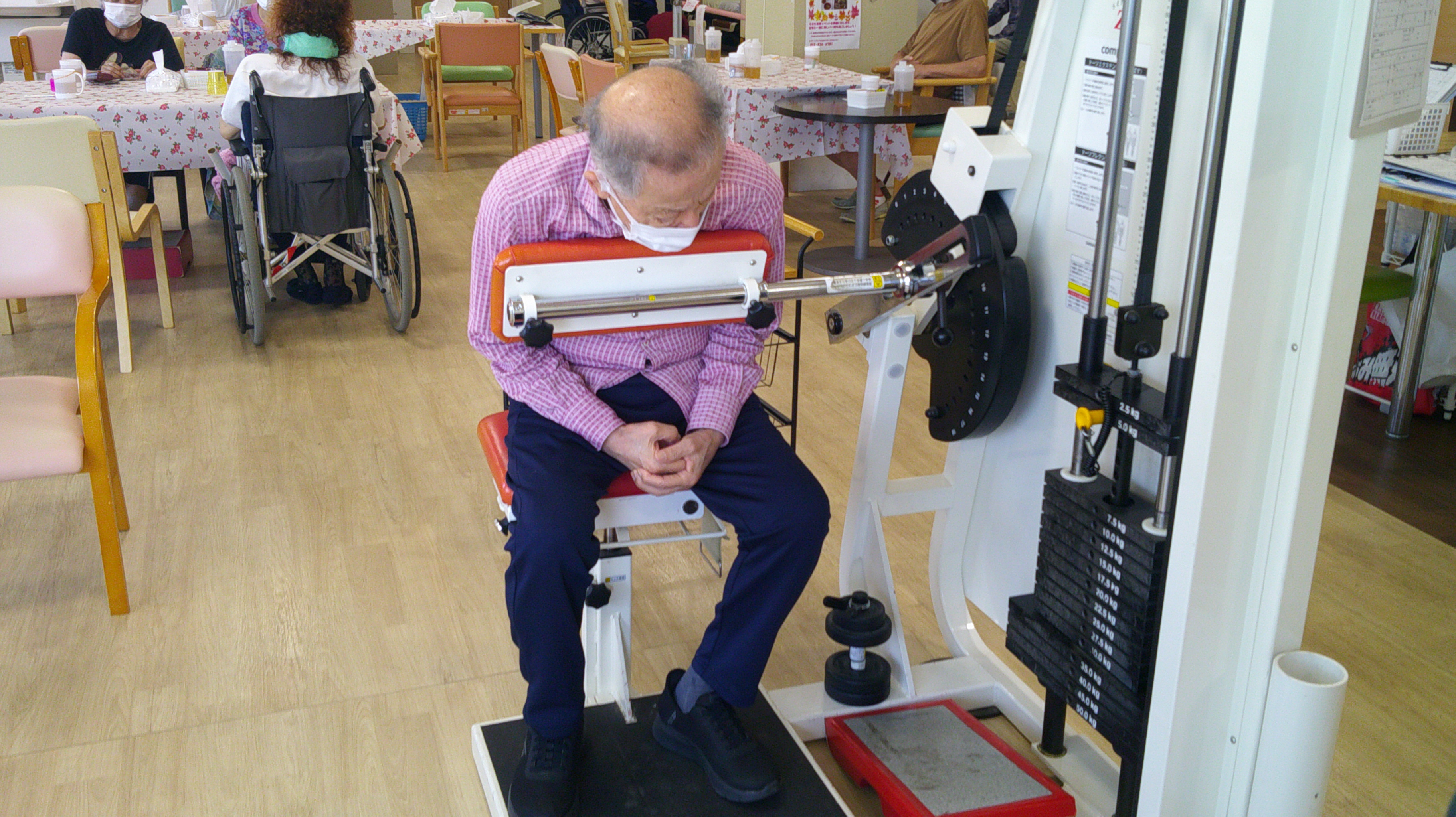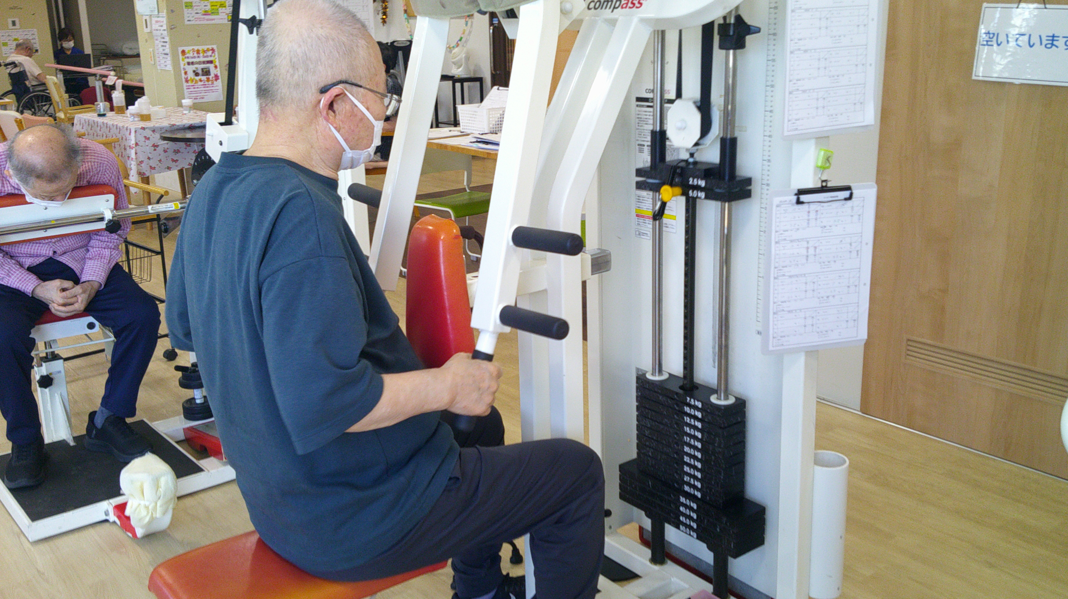 本日は運動レクで風船を使ったゴルフゲームをしました。かごに30点、40点、50点、100点と書かれた紙を貼り、職員が作った手作りのラケットで5個の風船を飛ばしかごの中に入れ何点とれるか競いました。最初はなかなかかごの中に風船が入らず皆さん苦戦していましたが、職員が「風船の下の方を打つと高く飛びますよ。」とこつを教えると風船が高く飛びがごの中に入るようになりました。一番点数をとられた方は恥ずかしそうにしながらも喜んでおられました(^_-)-☆