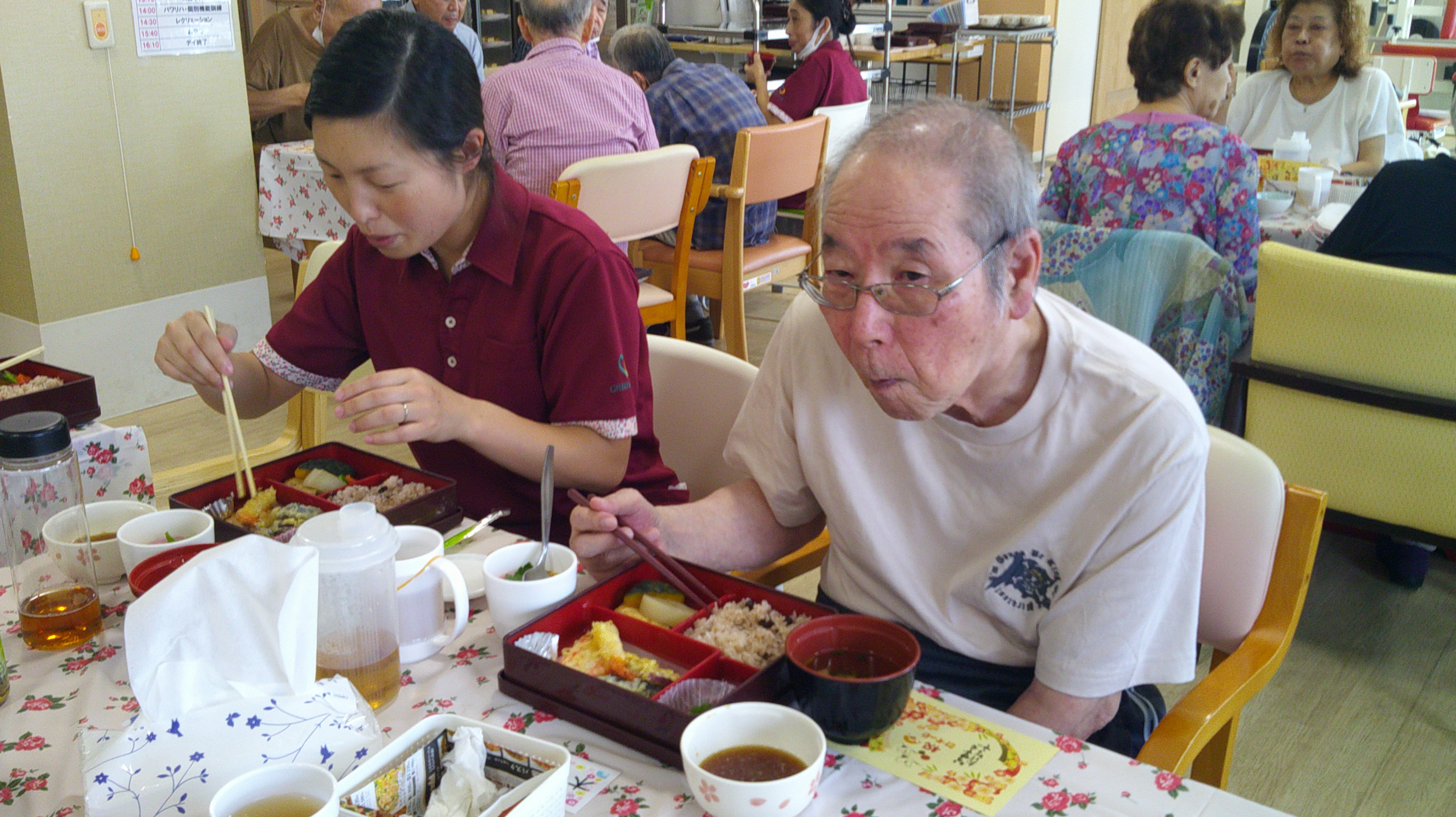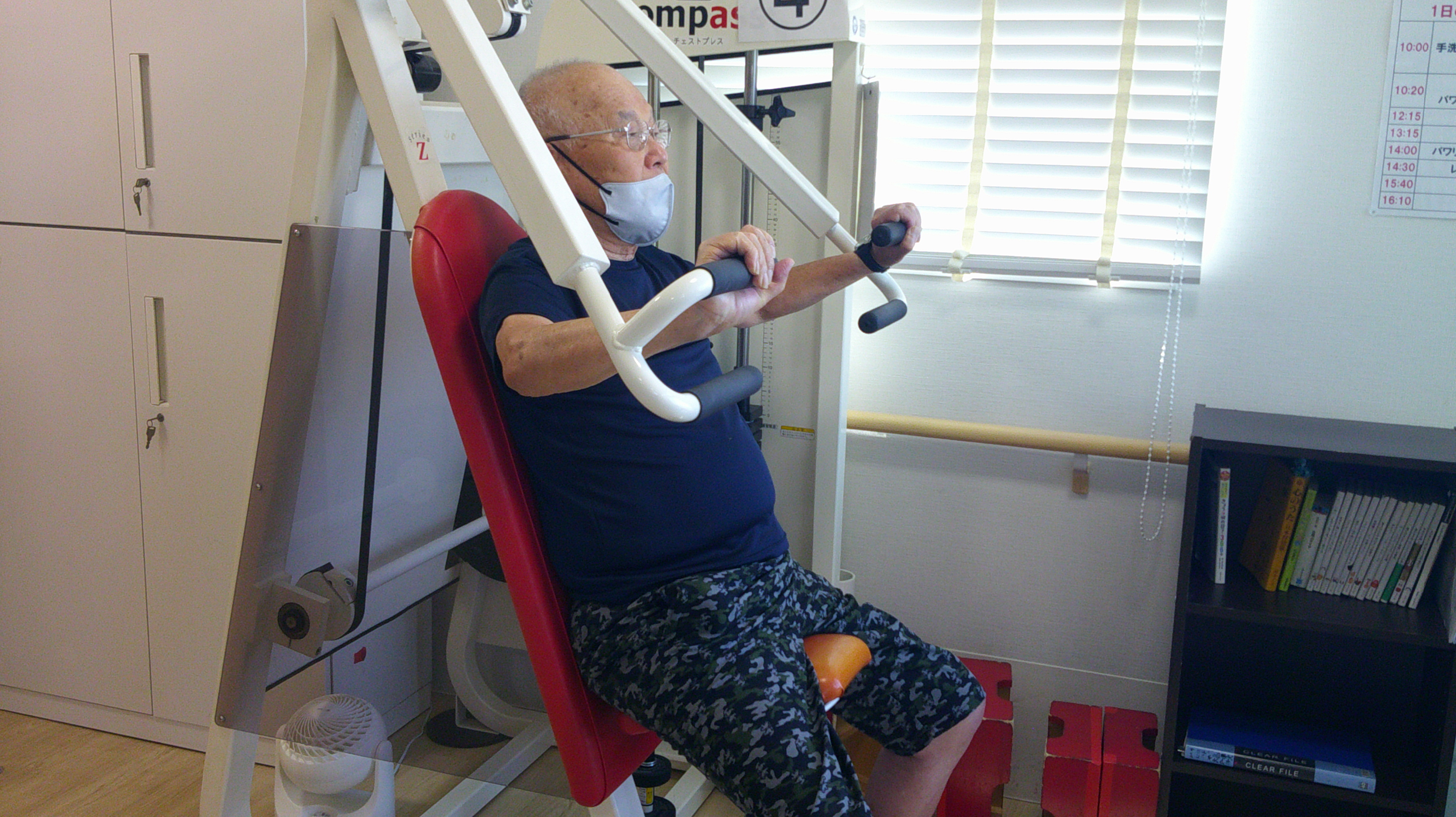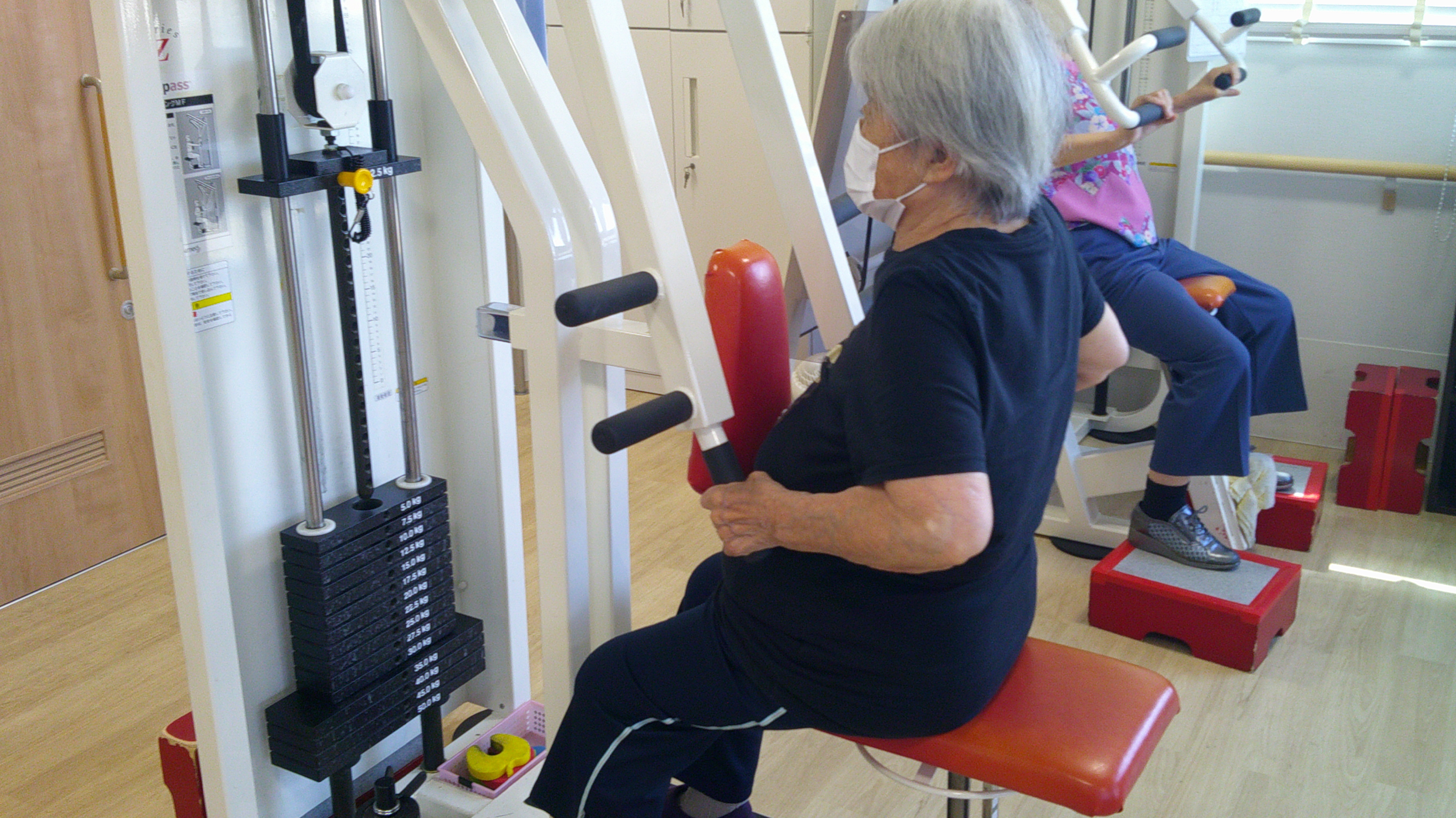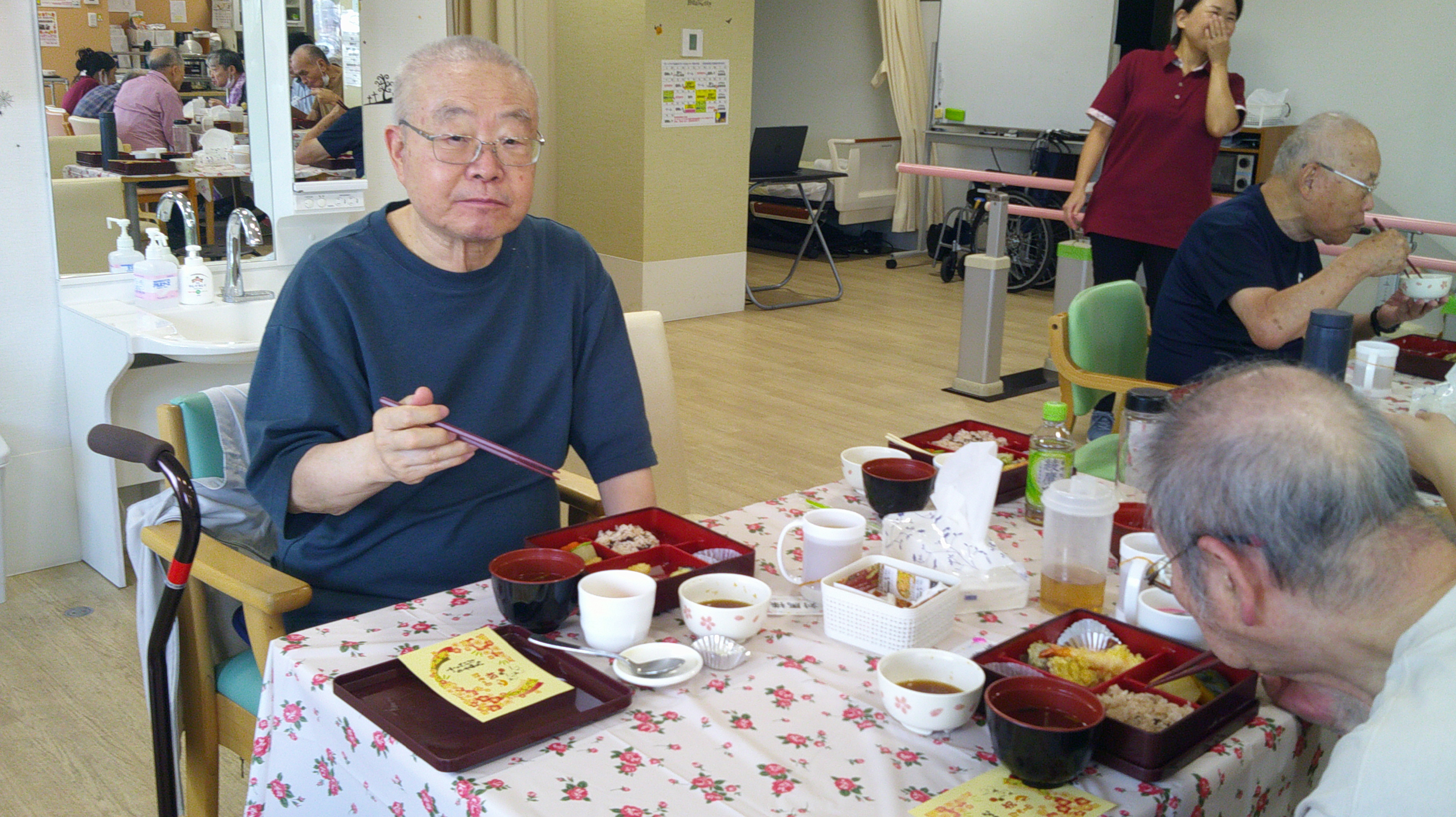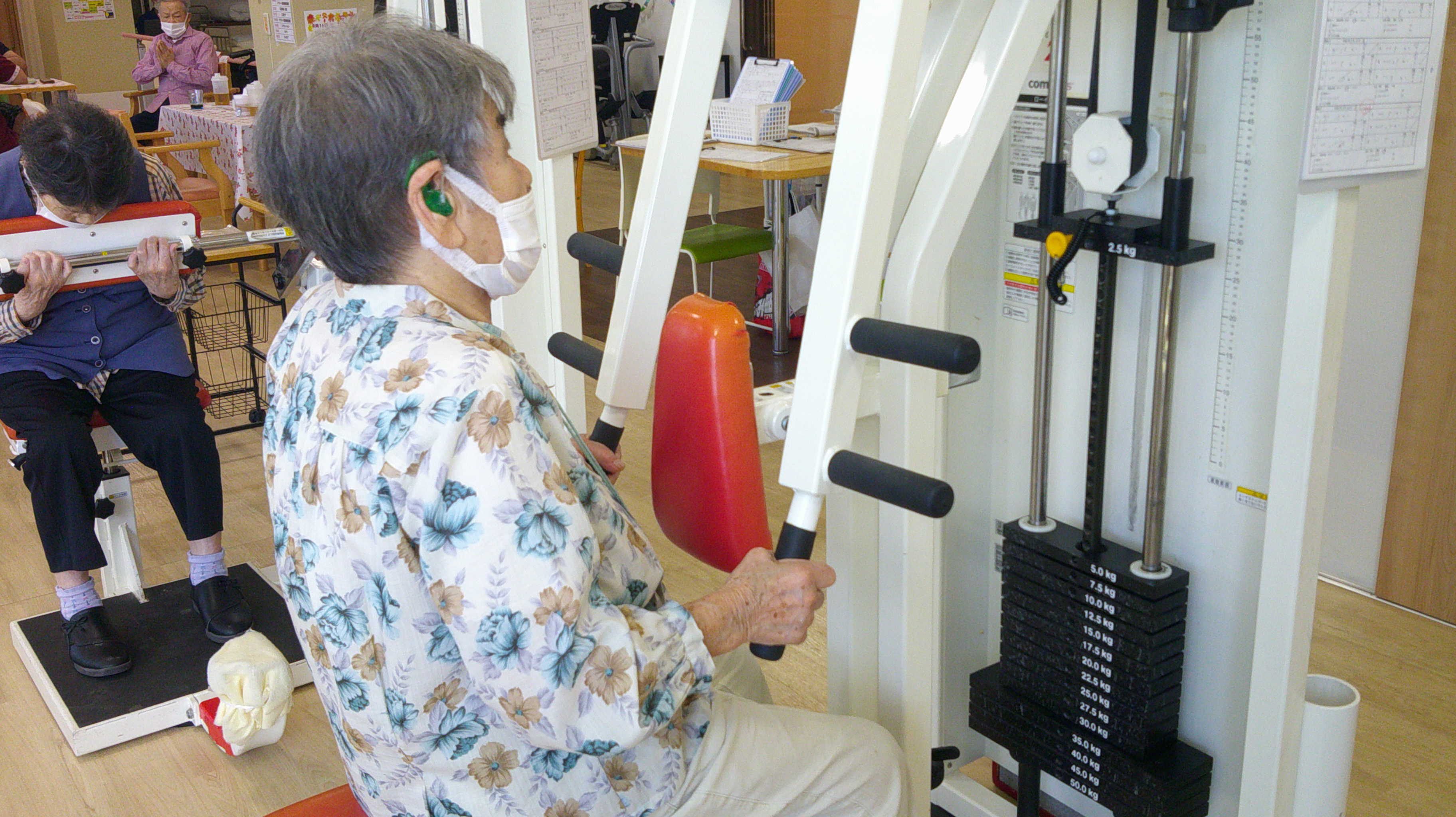 本日は運動レクで風船を使ったゴルフゲームをしました。かごに30点、40点、50点、100点と書かれた紙を貼り、職員が作った手作りのラケットで5個の風船を飛ばしかごの中に入れ何点とれるか競いました。最初はなかなかかごの中に風船が入らず皆さん苦戦していましたが、職員が「風船の下の方を打つと高く飛びますよ。」とこつを教えると風船が高く飛びがごの中に入るようになりました。一番点数をとられた方は恥ずかしそうにしながらも喜んでおられました(^_-)-☆