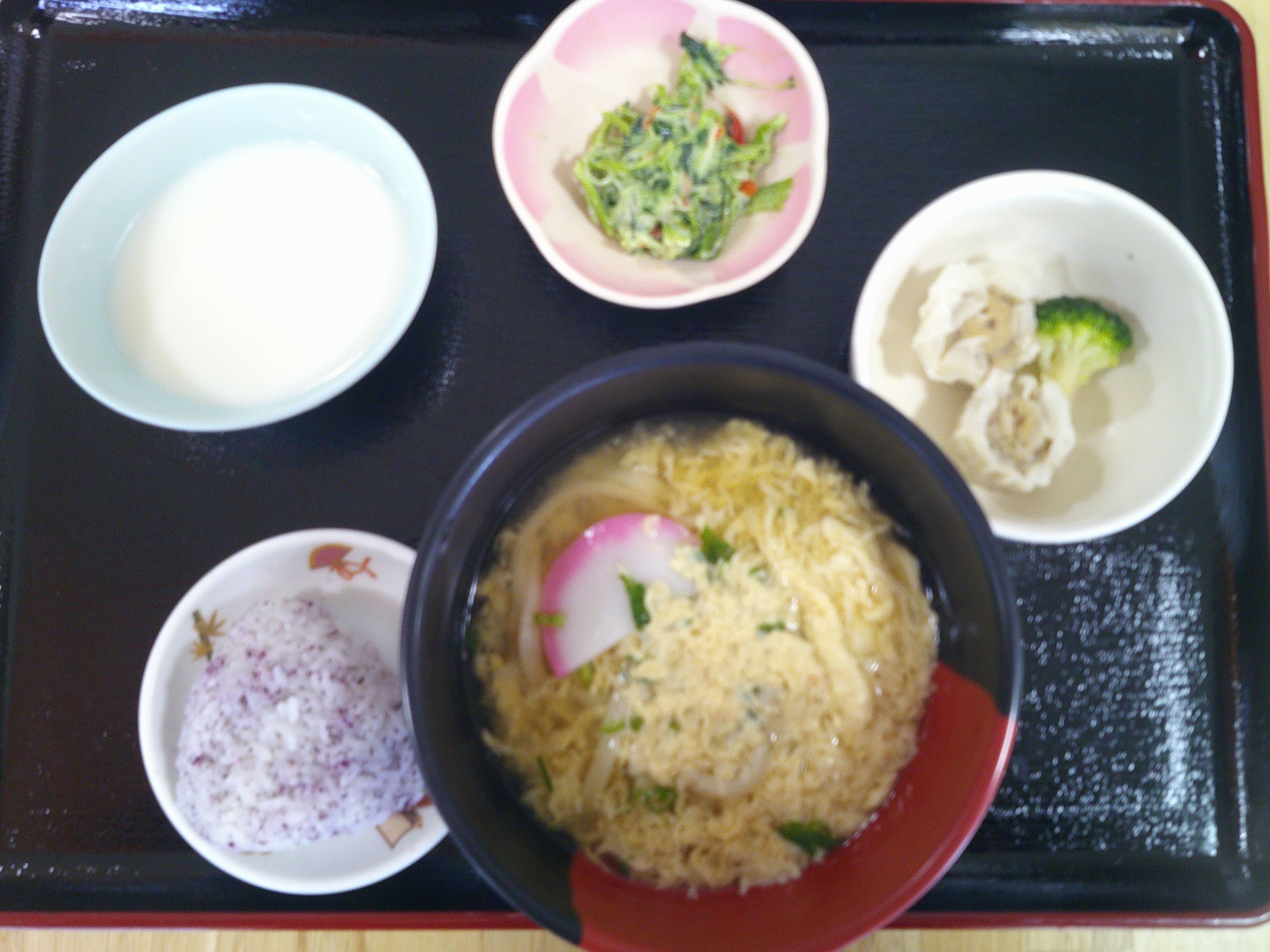 今日のランチは、散らし寿司・清まし汁・白和え・笹かまでした。