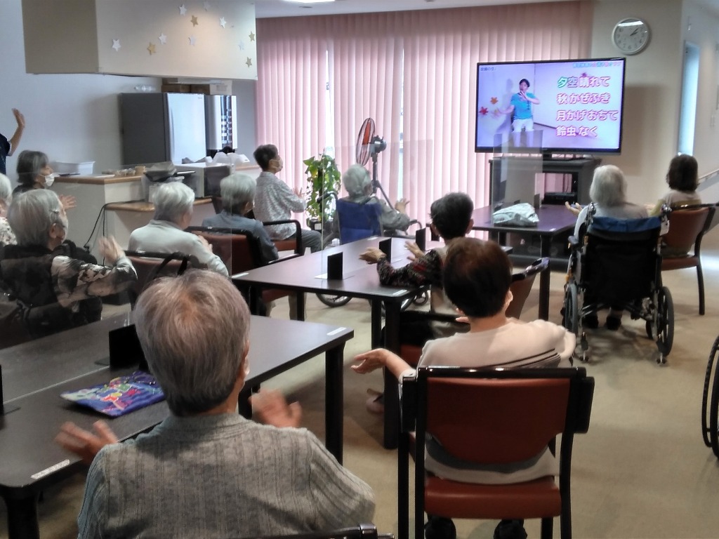 一緒に歌を歌って、モニターを見ながら一緒に体を動かして