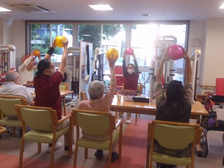 なんと、元気にボールで体操なんて