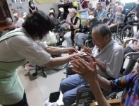 最後に、施設長より、敬老のお祝いの品をお渡しさせていただきました。