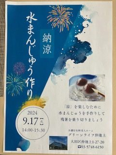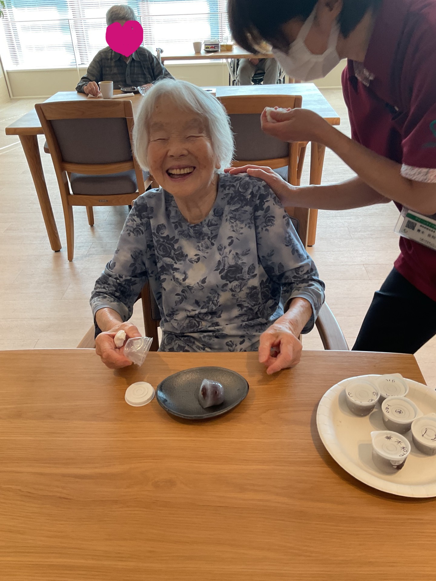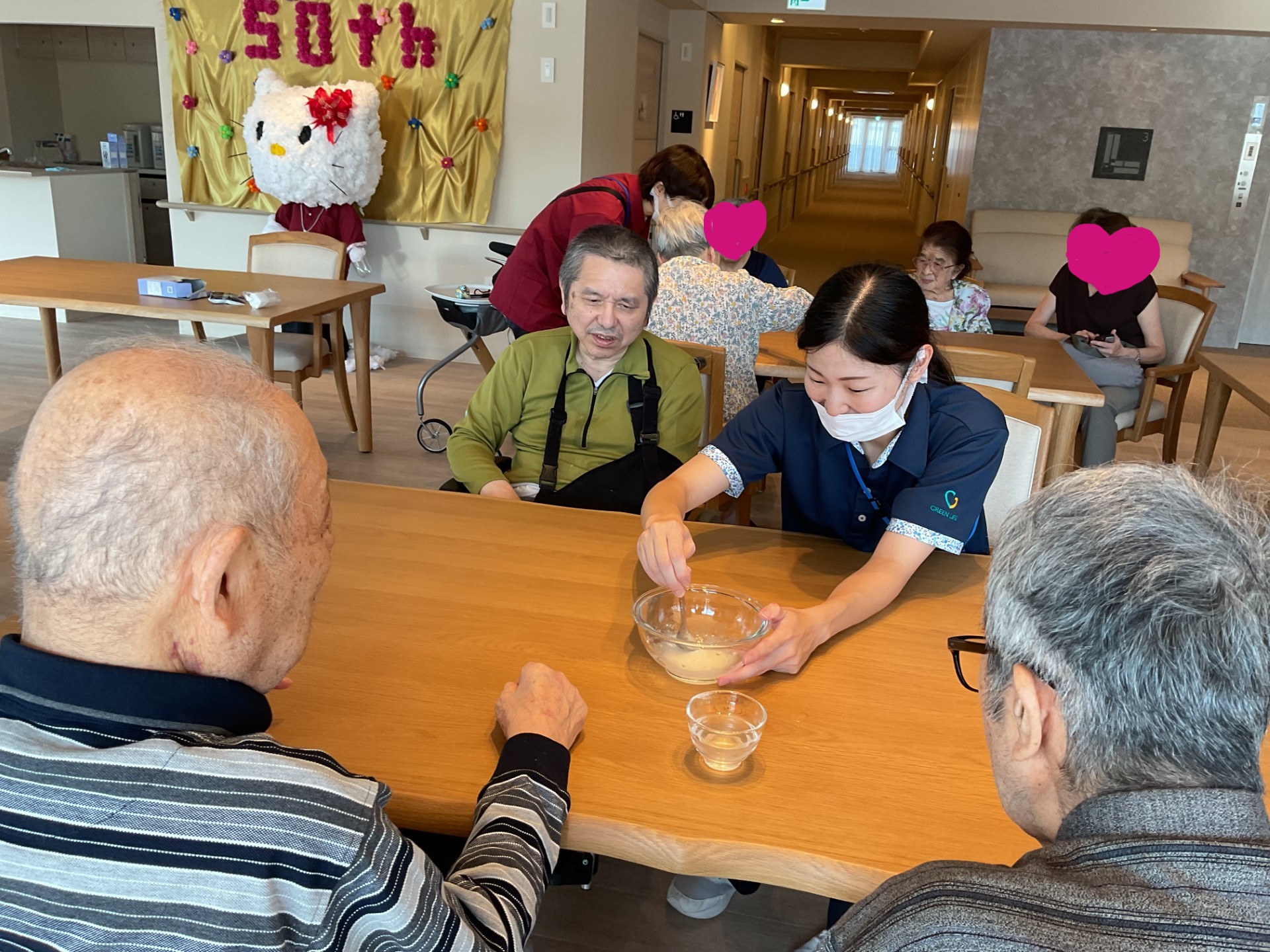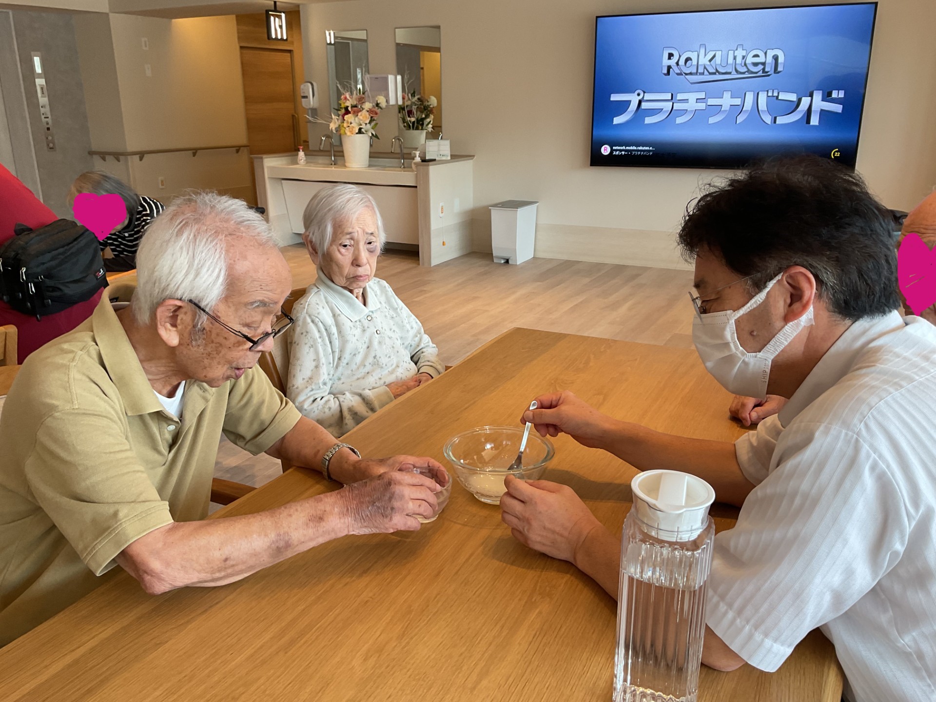 今日は、入居者様と一緒に「水まんじゅう」を作りました。