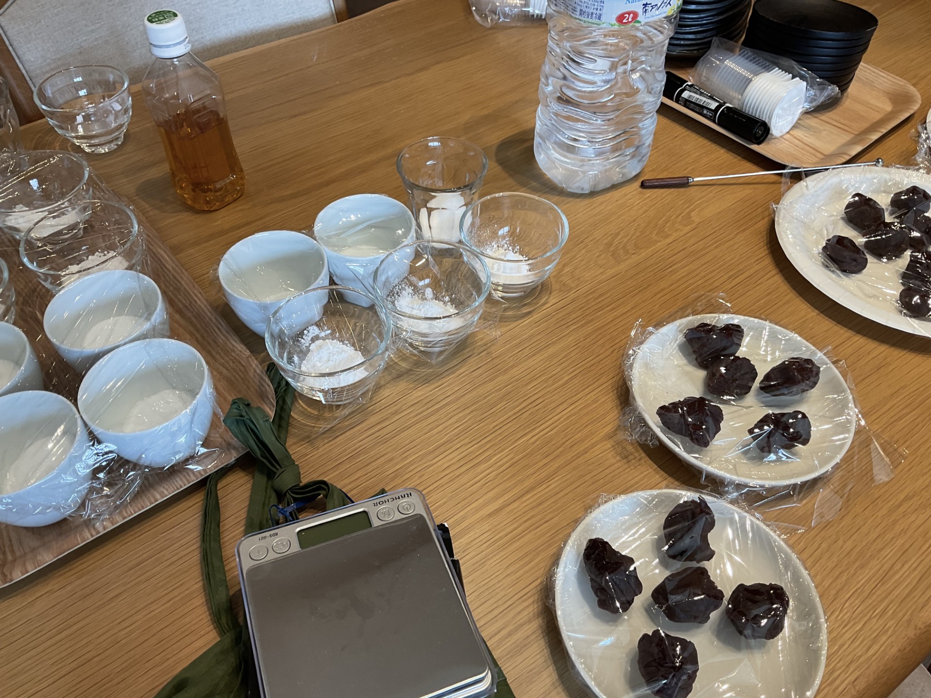チョットだけ市販のキットに助けてもらいましたが、こしあん・葛粉等と水を混ぜ合わせ、自分だけの「水まんじゅう」が完成しました。