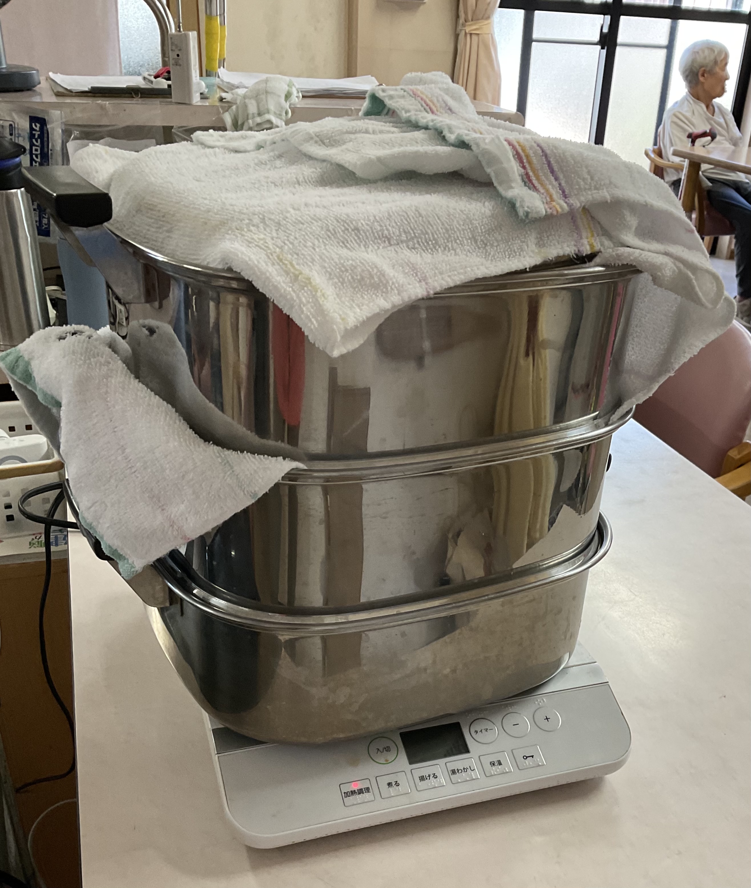 敬老の日!例年は、和菓子屋さんから美味しそうなお饅頭を買っていたのですが、何だか昔ながらの手作りのお饅頭が食べたくなりました。食べたくなったのは、職員です。田舎のお饅頭、破れ饅頭とも言うのです。早速作りました。ところがです。ベーキングパウダーを入れ忘れてしまいました。後から練り込んだので、思った程に膨らまず残念。しかしながら、とても美味しく出来上がりました。