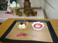 皆様お腹いっぱい、スタッフ感激いっぱいのひと時でした。午後からのお楽しみは、お月見フェアーで白玉だんご入りの美味しいフルーツポンチを頂きました。