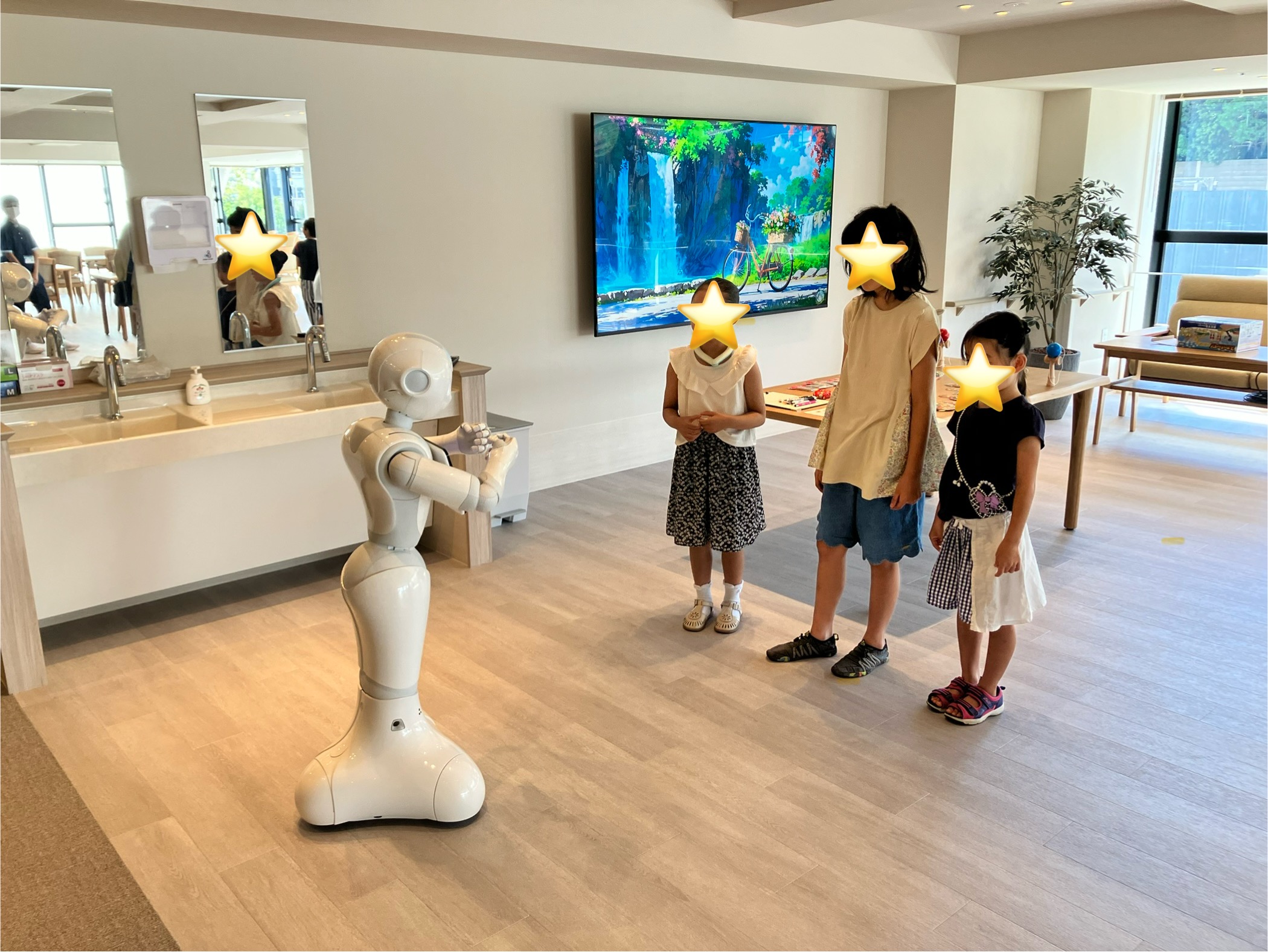 地域から11名の参加がありました。ペッパー君に歌やダンスを披露してもらい、子供達も興味深々で、ペッパー君に話しかけていました。おもちゃを使って、入居者の方とも交流が出来ました。独楽やお手玉、けん玉なども楽しめて良い時間が過ごせました。