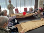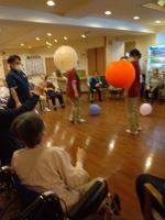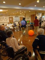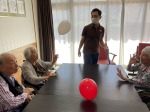 こんにちは、シーハーツ柏です。 今日はリハビリ教室です。6人で楽しく風船を使ったゲームに取り組みました。まずは、手で風船を飛ばせて落とさないように。「ほぅ!」と、入居者様のS様は気合いが入ります。第二弾は、タオルを使って風船を落とさないように、入居者様で協力します。「両手と上半身の力が必要なので、鍛えられていい運動ですよ。」と、リハビリ担当の小林さん。 この後も、第2グループの集団リハビリゲームも実施していただきました。入居者様のチームワークが垣間見えた土曜日でした。ご協力ありがとうございました。