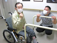 室内レクリエーションにて、利用者様に作っていただいた用具を使い、挟んでカゴにIN。