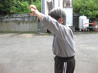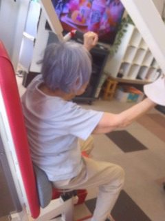 この日は曇り空なので、外でからだを動かそうと入居者様と出かけましたが、
