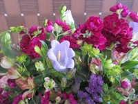 アクセントになっている薄紫のカンパニュラは、可愛らしい鐘の形をしています。