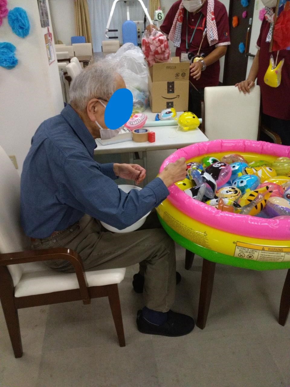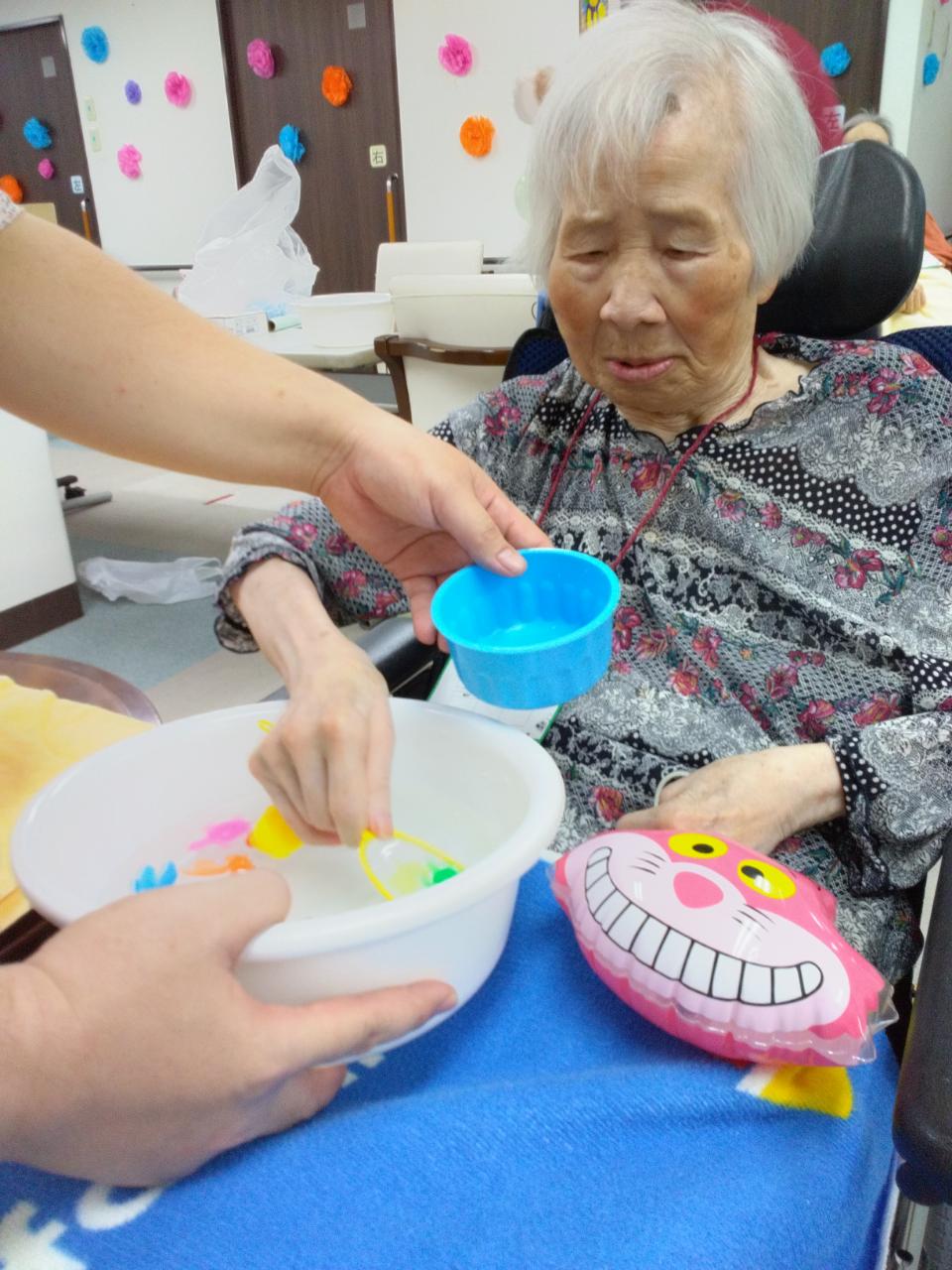 出店内容はジュース・アイスクリーム・たこ焼き・お菓子つり、そして看護師によるネイル屋さんも(⋈◍>◡<◍)。✧♡皆様、券を持って好きな店に向かわれお祭り気分を楽しんでいただきました♬たこ焼きは3回もおかわりされたご利用者様もΣ(・ω・ノ)ノ!ネイル屋さんは女性に大人気で、皆様自分の指を見てうっとりされていました(*^-^*)紹介しきれないお写真はまた明日(^o^)/