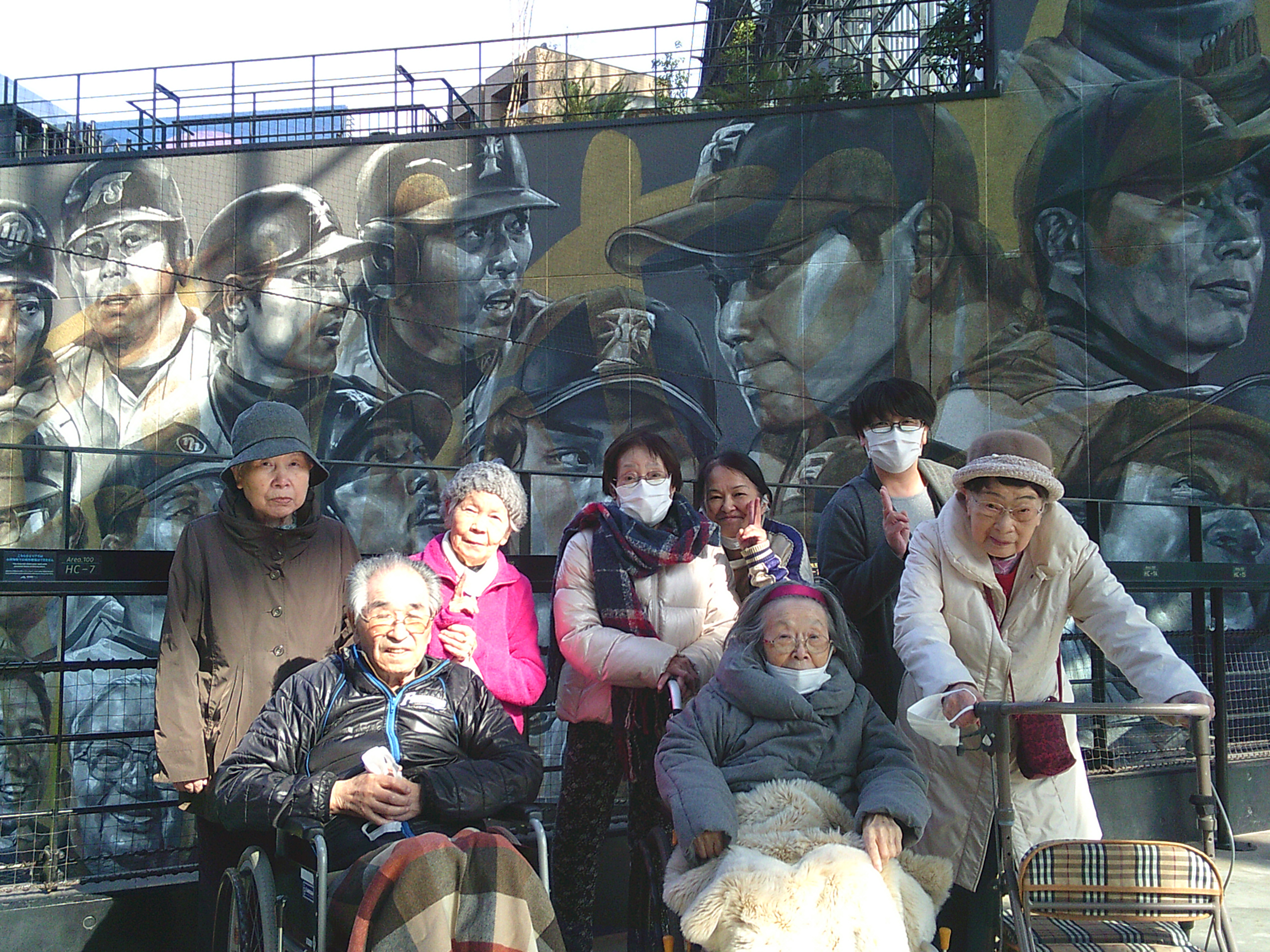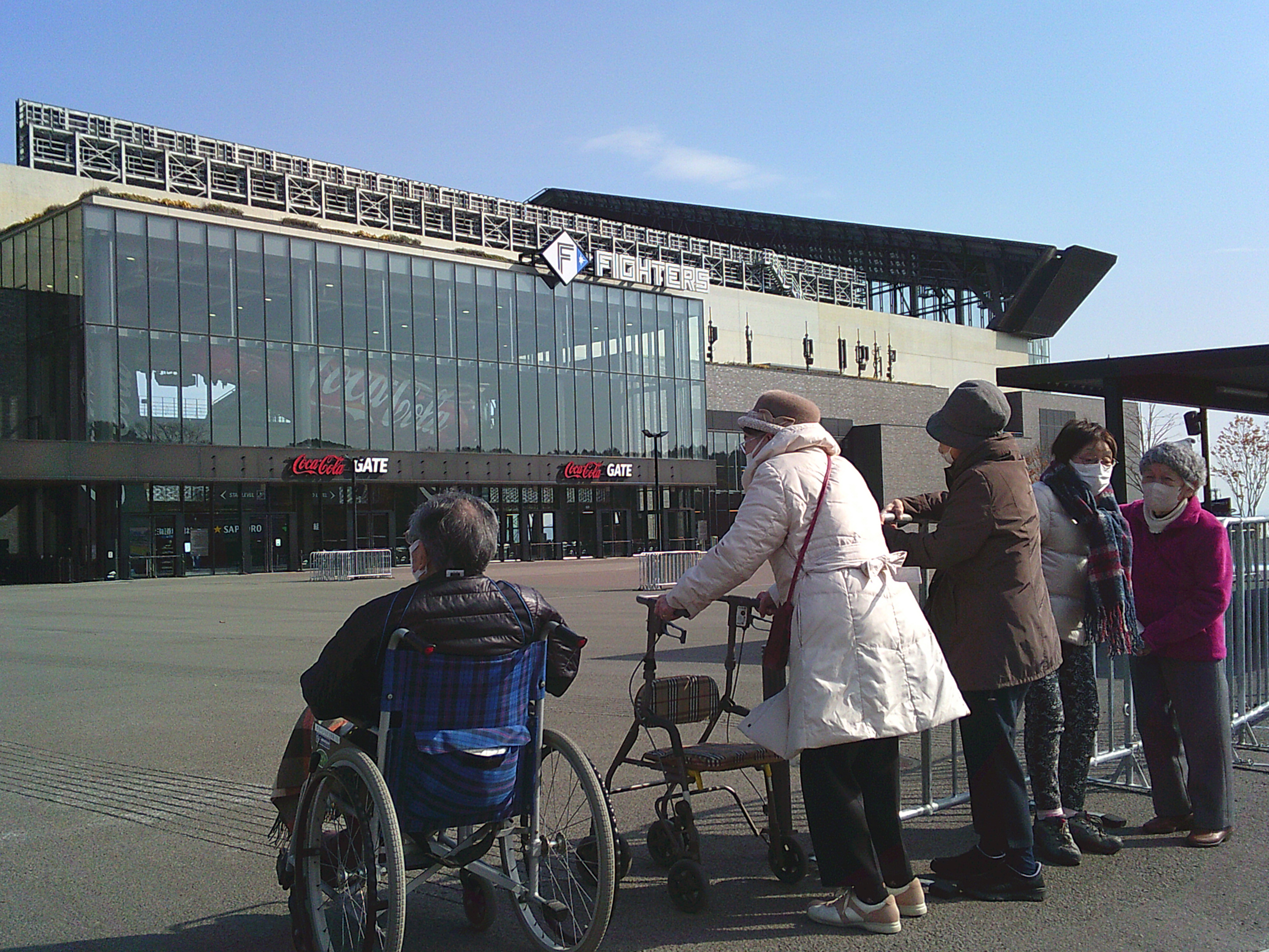 球場に着いてから みなさん頑張って歩きました!テレビで見ていたあの球場を見た瞬間
