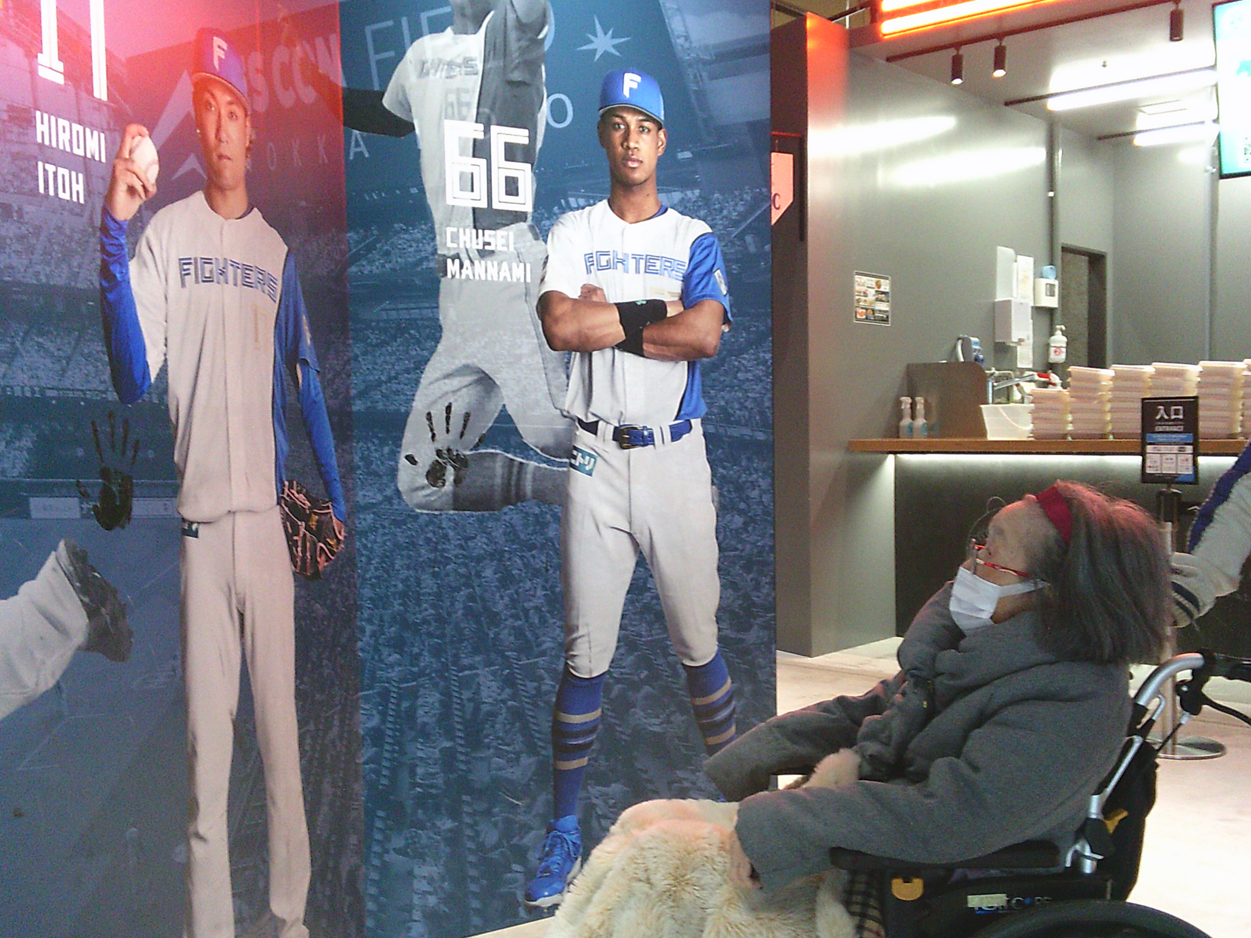 どちらも顔が白いので最初は入居者様びっくり!!若干引き気味の表情でした💦
