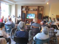 今日は、10階のエレベーター前に塗り絵や貼り絵が飾られていました。コスモスやとんぼ、花火、かわいい女の子です。レクリエーションの時間でした作品でしょうか。色は十人十色で、作られた方の個性も見れますね。