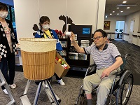 最初は「玉入れなんて簡単よ~」と言っていた方も、「あら、結構難しいわね」と段々真剣な表情に・・