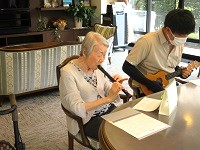 1階ラウンジで、久しぶりのハーモニカとリコーダー演奏!