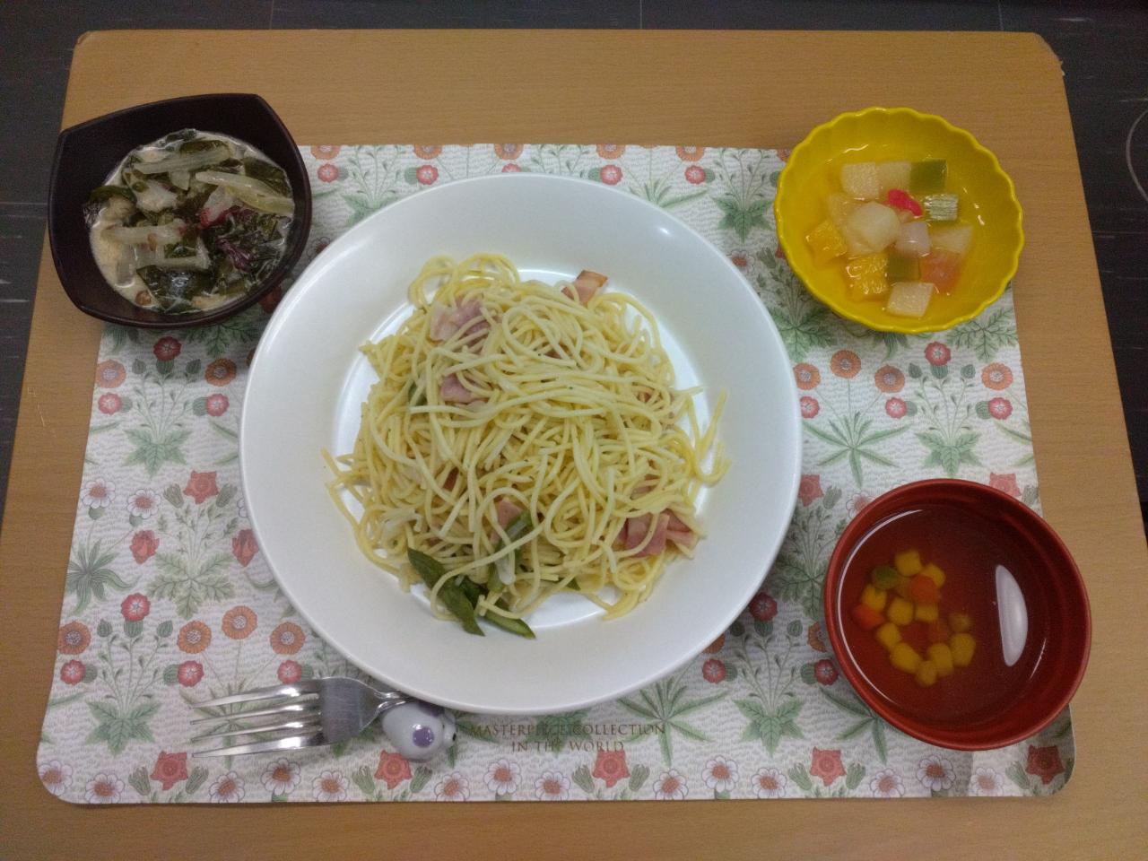 皆様、美味しそうにベーコンとアスパラのスパゲティを召し上がっていました!