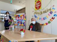 本日お誕生日のご入居者様のお祝いをささやかながらさせていただきました。