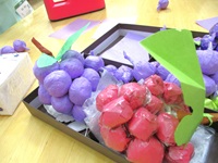 ティシュを丸めて、お花紙で包んだら、ブドウの実が完成しました☆