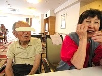 ヨーヨー釣り、射的、輪投げを楽しまれ、フランクフルト、アイスを味わいながら皆様と楽しんでいただきました。ご家族様も一緒に楽しんでくださり、いい思い出にもなりました。担当スタッフも準備から頑張っていて、今日の皆様の笑顔で達成感を感じられたようです。最後、担当リーダーの松山千春の「空と大地の中で」はまさに見た目、歌声そっくりで皆様もうっとりでした。