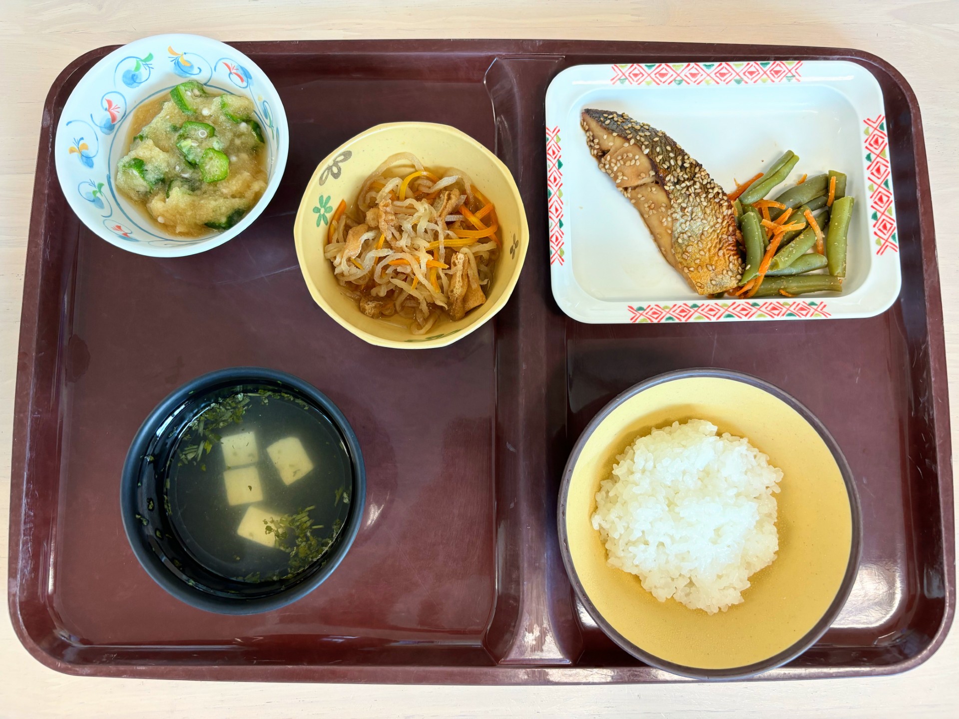 献立のメニューは、揚げ鱈におろし煮と金平牛蒡、そら豆の白和えです。