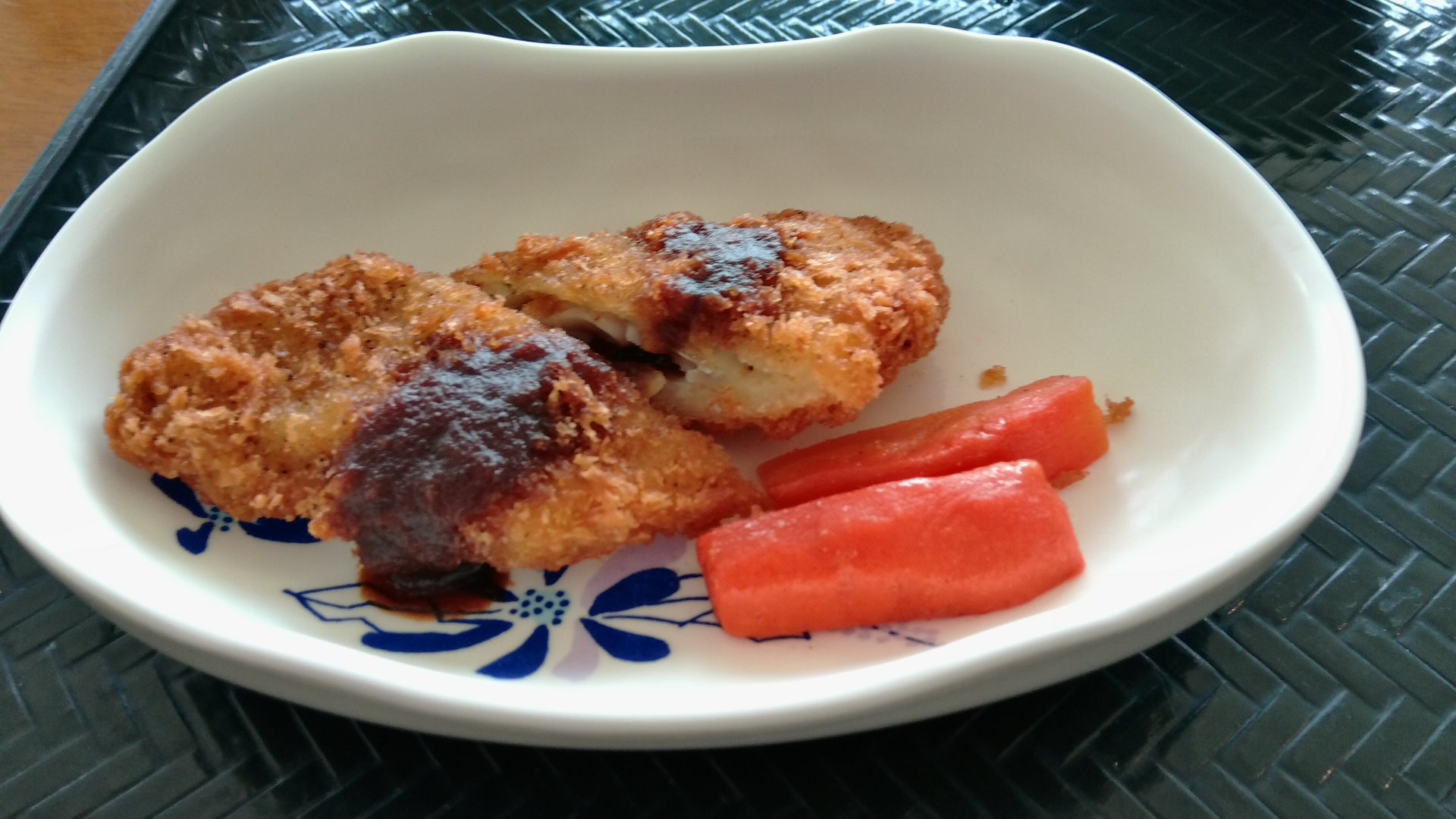 🍀とんかつソースで食べる🐟白身フライ