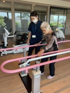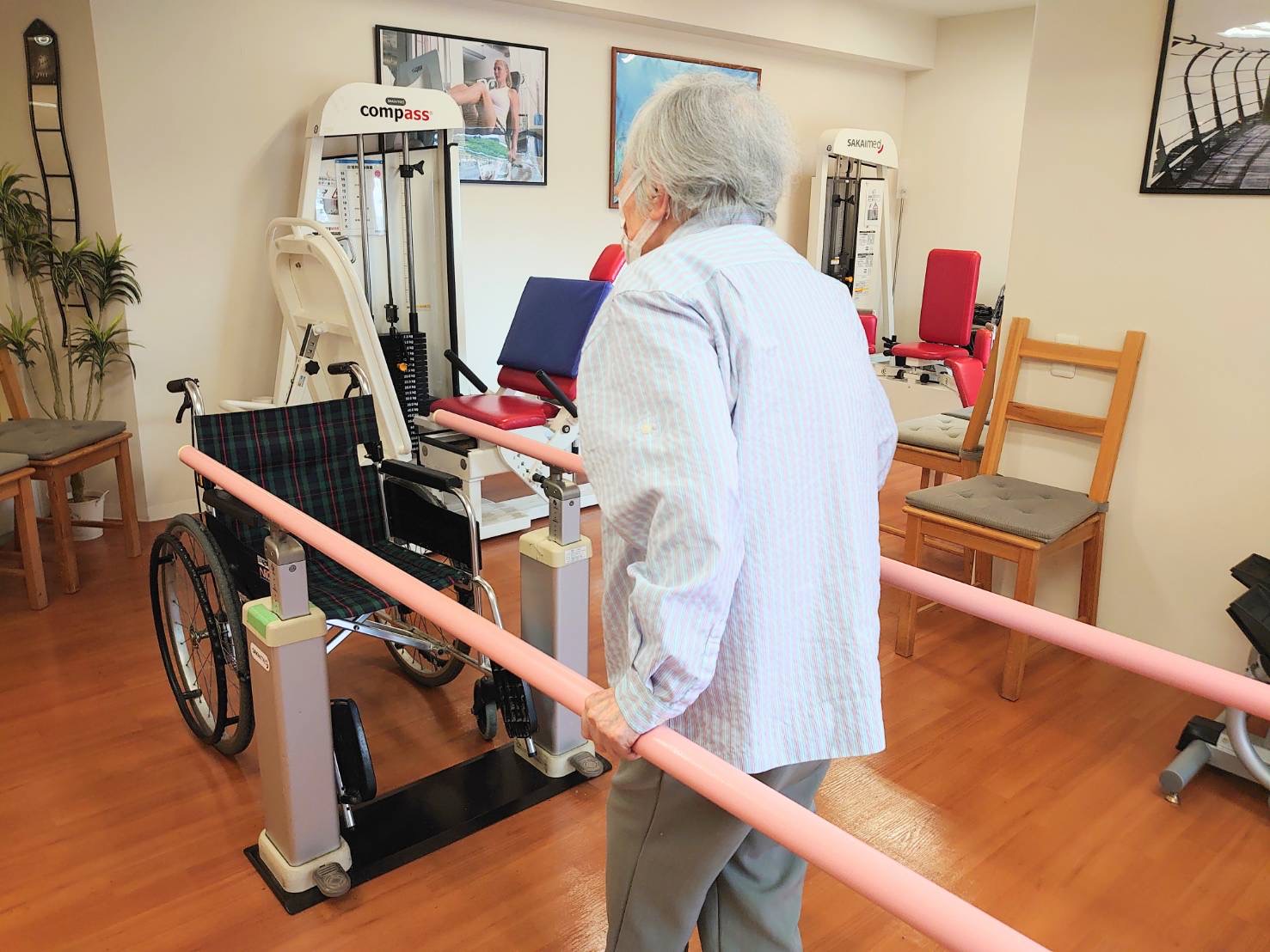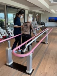 平行棒は、立っている時のバランスの獲得や、筋力と耐久力の増大を目的とし実施します。