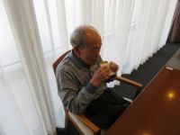本日の午後は「でんきくん」による演奏会がありました。定番の「高原列車」から始まり、「糸」「竹田の子守唄」「大空と大地の中で」などのフォークソングをうたって頂きました。その後、利用者様からのリクエストで吉田拓郎の「落陽」を歌って頂きました。沖縄の曲「武富島で会いましょう」「憧れのハワイ航路」とのりの良い曲で、盛り上がりました。最後は「満天の星」で振り付けを皆さん元気に身体を動かされていました。今日は、ありがとうございました。またよろしくお願いします(^-^)