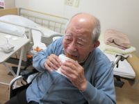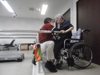 一枚目はリハビリ室での起立訓練の様子です。頑張っていますね!!