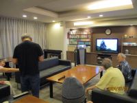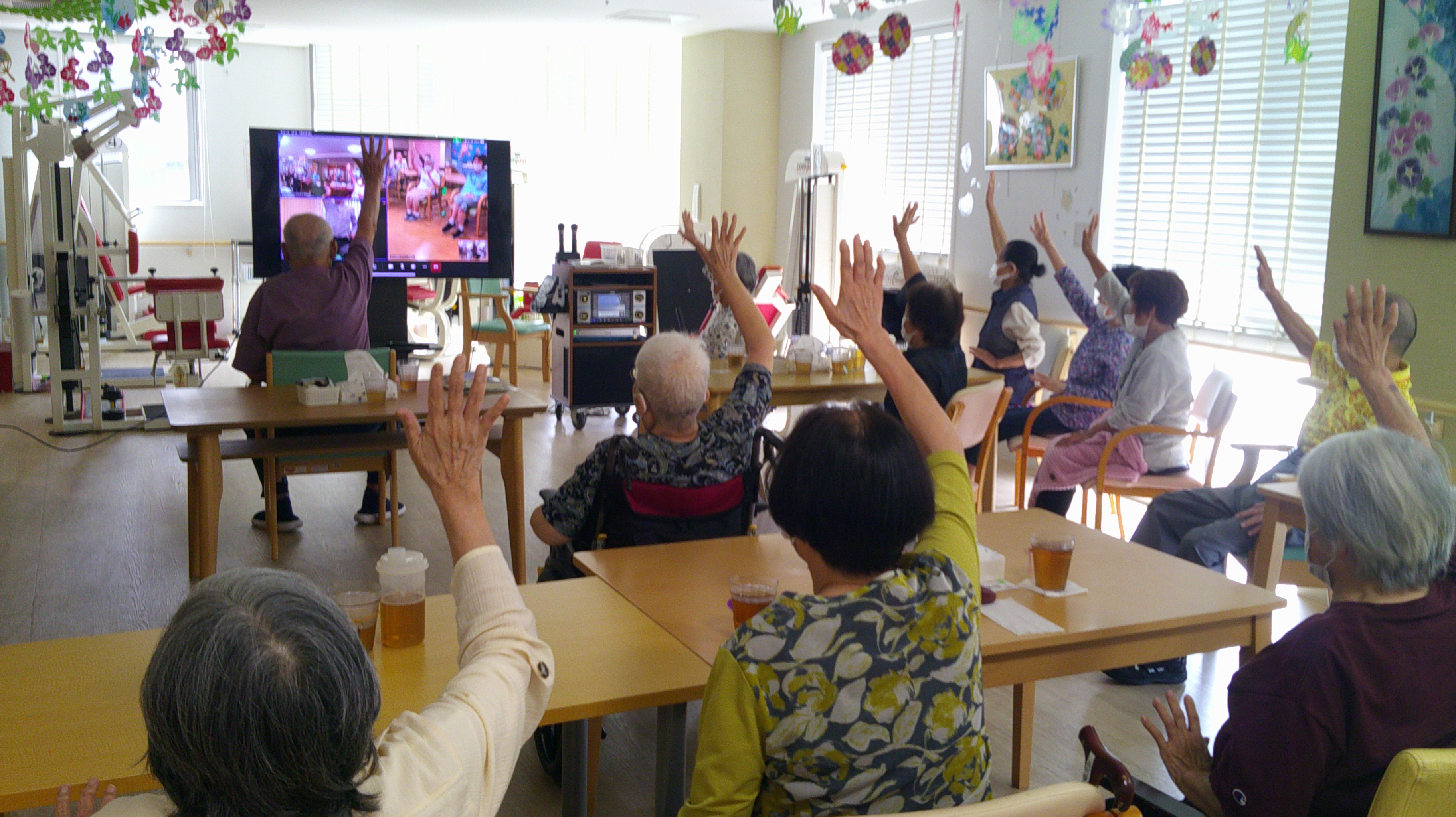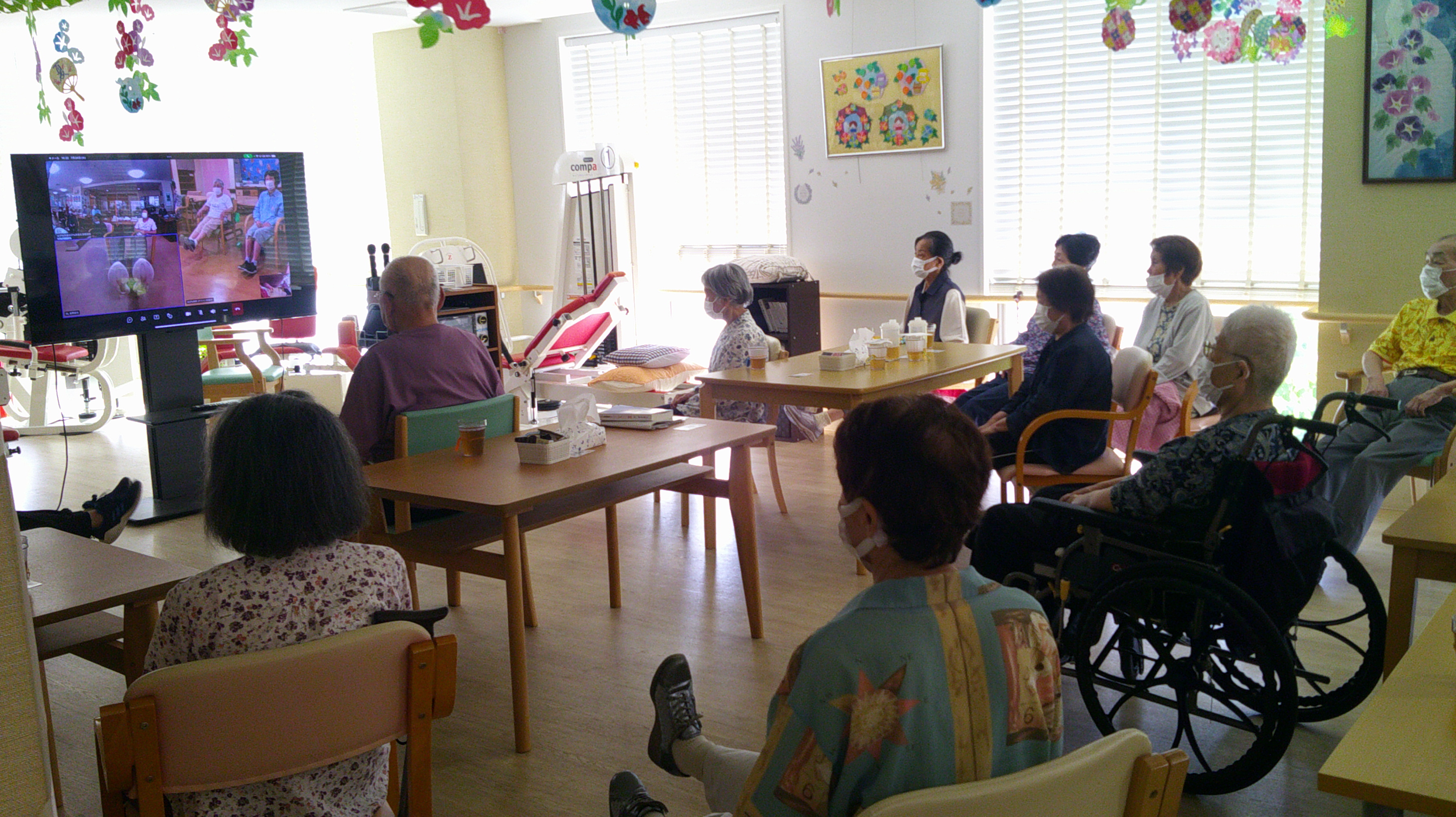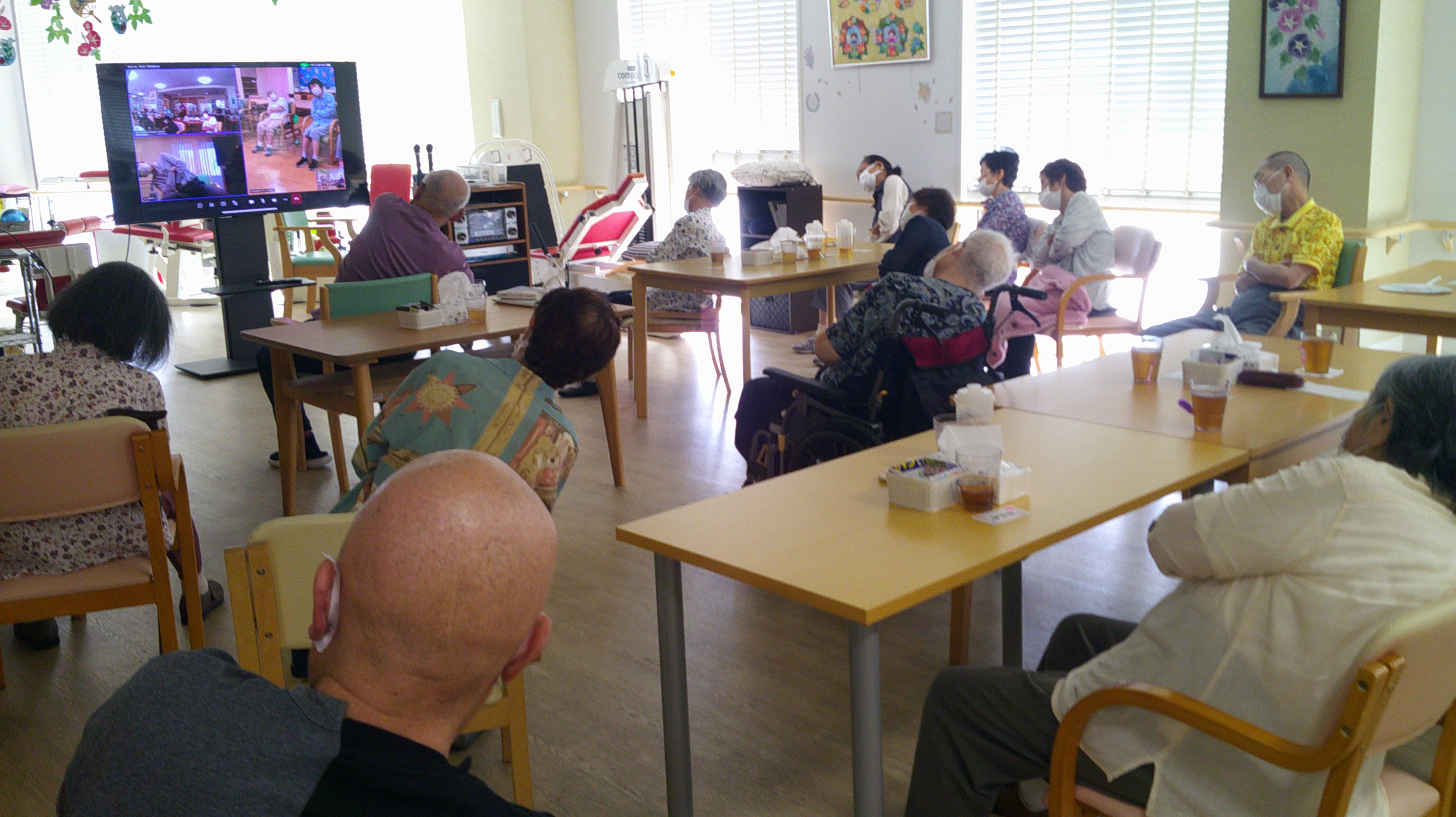 本日は、カラオケの日でした。12時半頃、天気が急変して風と雷が鳴り始め、普段は川口市内のカラオケ店に歌いに行かれるご入居者様も外出されずに、一緒に参加してくださいましたので、いつもより多くの参加がありました。