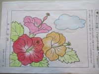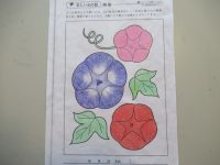 夏の花、ハイビスカス・朝顔・ほおずきをきれいに塗っていらっしゃいました。