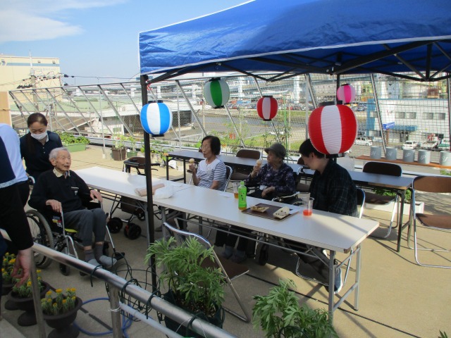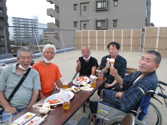 昨日7/22の16時から【屋上ビアガーデン】を開催しました‼16時といえばまだまだ暑い時間ですが、屋上は気持ちいい風が吹いてテントの中は割と涼しかったです( ^^) 近隣の施設やいつもお世話になっている方々、ご利用者様のご友人、たくさんの方が来て参加してくださいました(*^-^*)会場は日が暮れる頃まで盛り上がり大成功‼ヽ(^o^)丿ぜひ第2回も開催してほしいとのお声もいただきました🌟🌟🌟屋上の解放感と景色も最高でした(*^-^*)