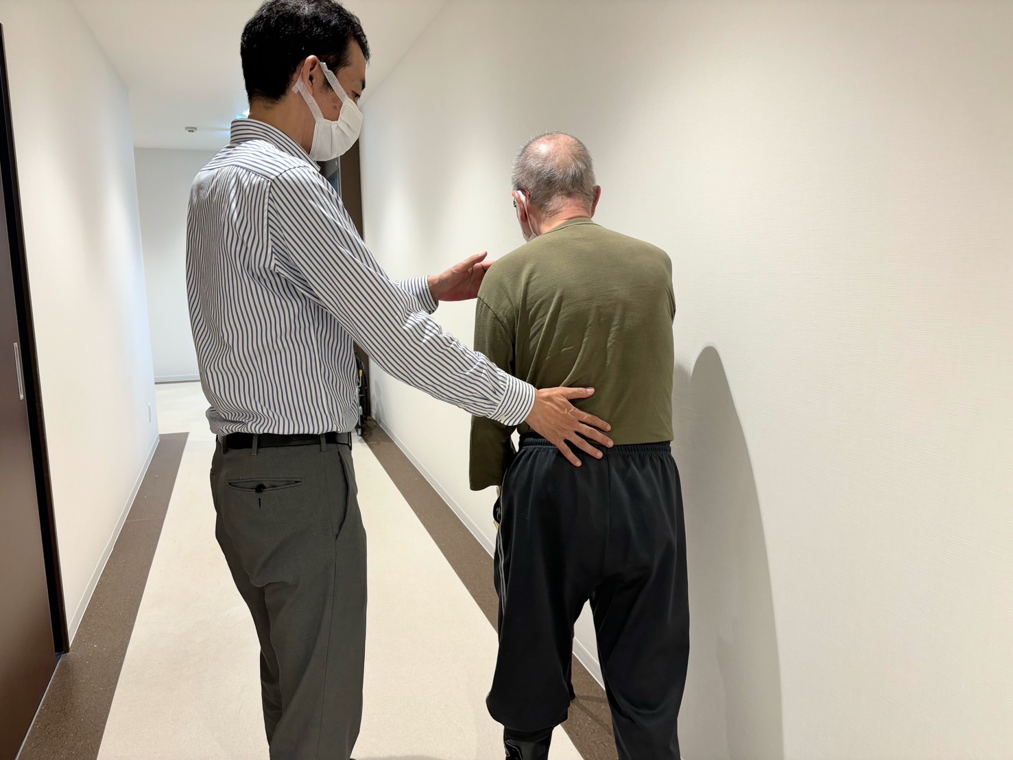 3階の男性入居者様をお誘いして玄関先に出て