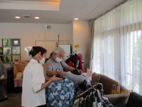 今日は、月に一度の皆さんお楽しみにしている「音楽療法」の日です。今日も「世界の国からこんにちは」の替え歌から始まりました。次に歌われたのは、ソーラン節です。これが素晴らしい!合いの手の掛け声がまるで練習したかのようでした。ヤーレンソーランソーラン「ハイハイ」!!お見事!海にちなんだ歌も数曲歌われています。最後に歌われたのは「星影のワルツ」です。この曲も毎回、締めの曲として歌われています。皆様の気持ちが伝わる歌声でした(^^♪
